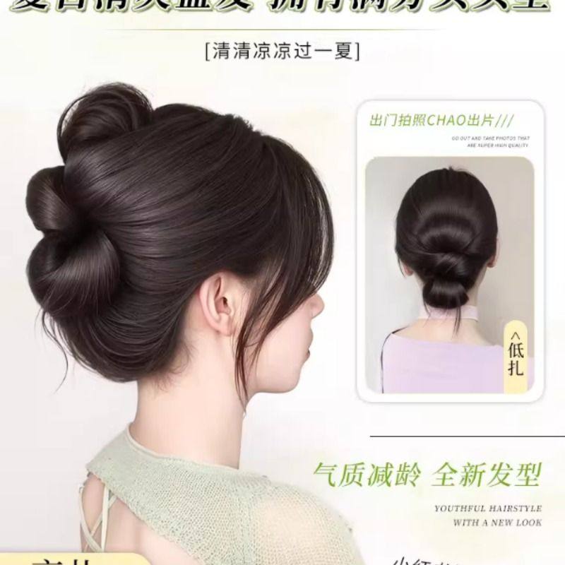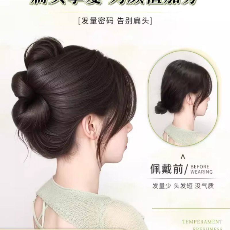 丸子头假发抓夹气质慵懒花苞盘发神器发包扁头专属饱满后脑勺发圈