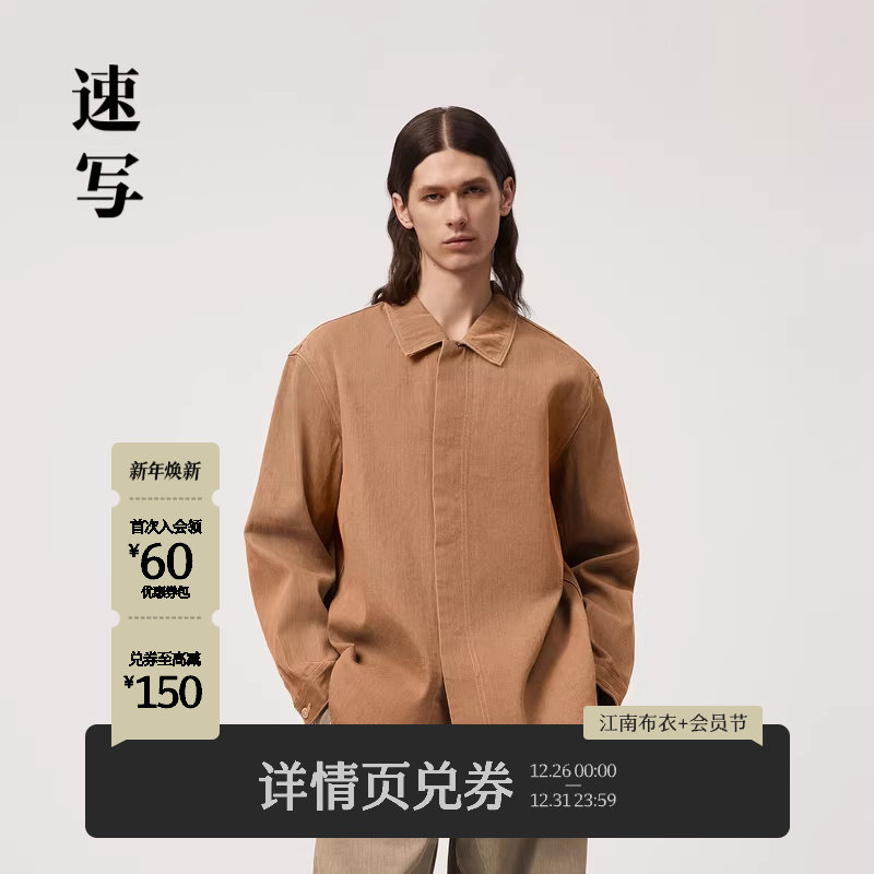速写男装翻领长袖男士衬衫春夏新款设计感休闲纯色时尚衬衣上衣