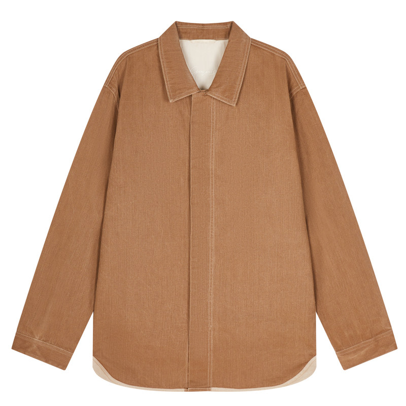 HMN Studio日系复古基础春秋棉感翻领衬衣男条纹开衫长袖休闲衬衫