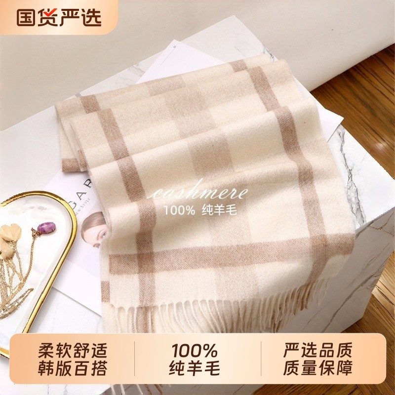 尖货英国100%羊毛格子围巾女冬季学生百搭男保暖情侣围脖生日礼物