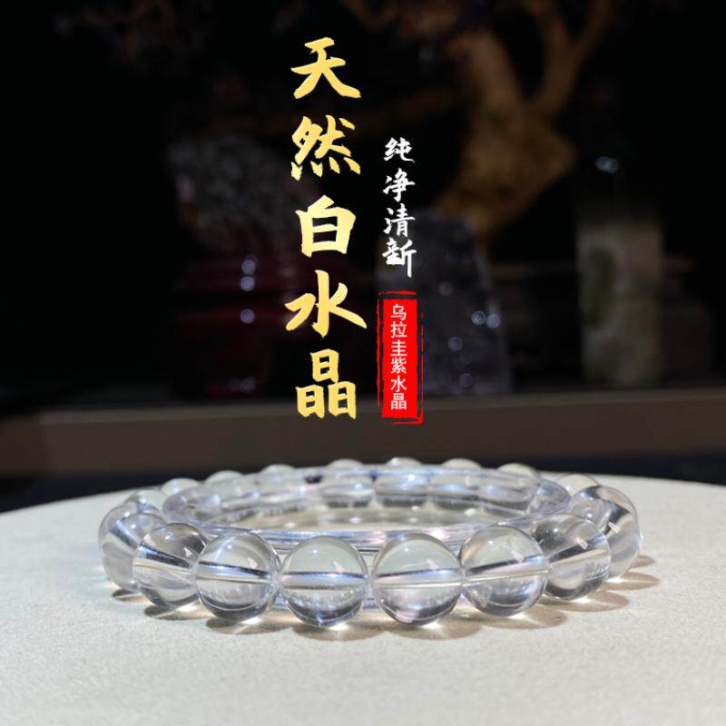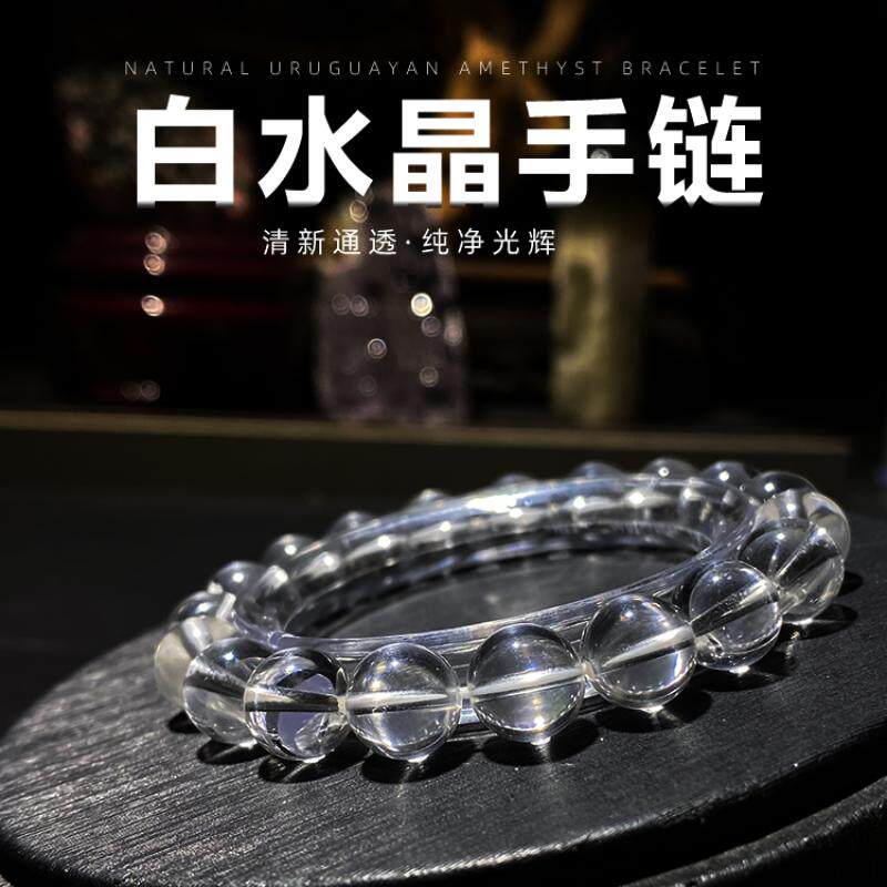 天然净体白水晶手链全净体珠串收藏级饰品巴西单圈透明乌拉圭