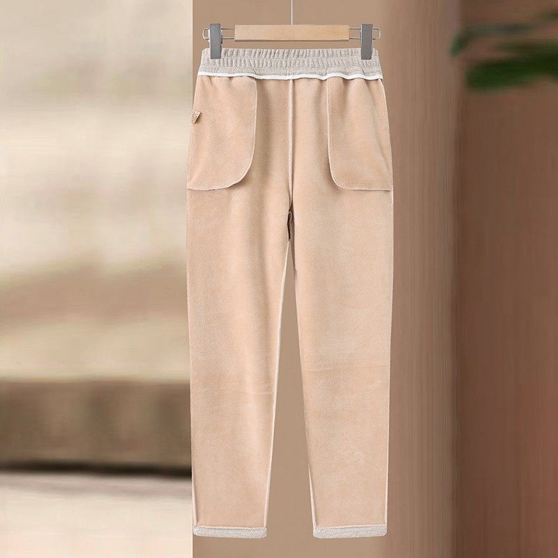 妈妈装秋冬季加绒加厚长裤中老年奶奶装裤子松紧腰直筒裤小个子