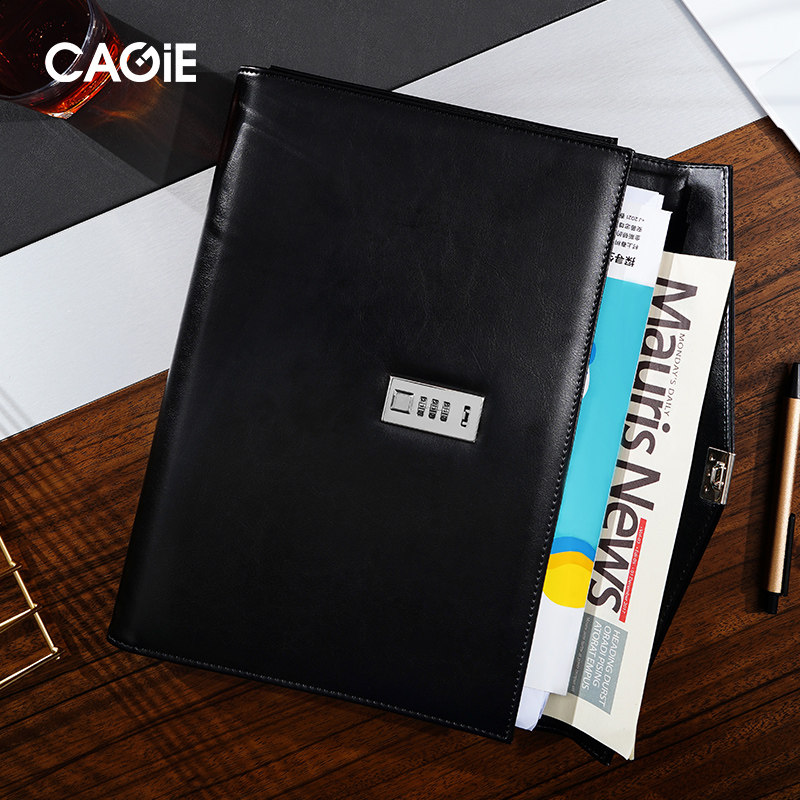 高档密码本商务A4文件包资料夹办公用品皮质密码锁会议公文包定制