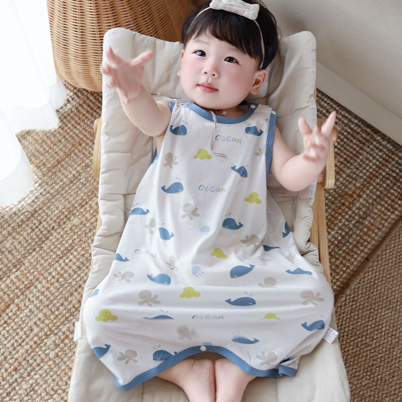 婴儿睡袍夏季薄款睡裙宝宝睡衣男童家居服空调服儿童防踢背心睡袋