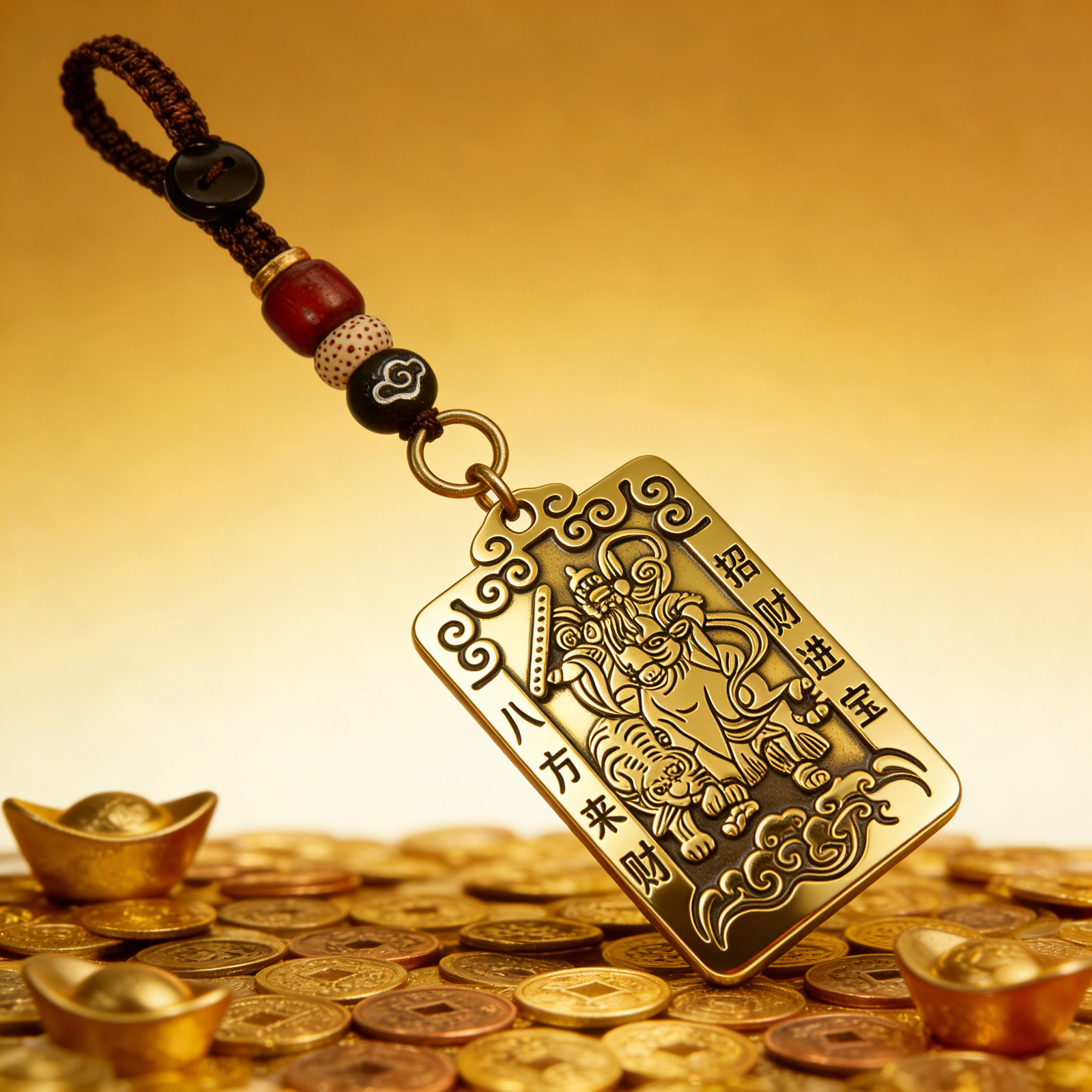 【正财神赵公明】真黄铜正财神牌钥匙扣挂件越磨越亮