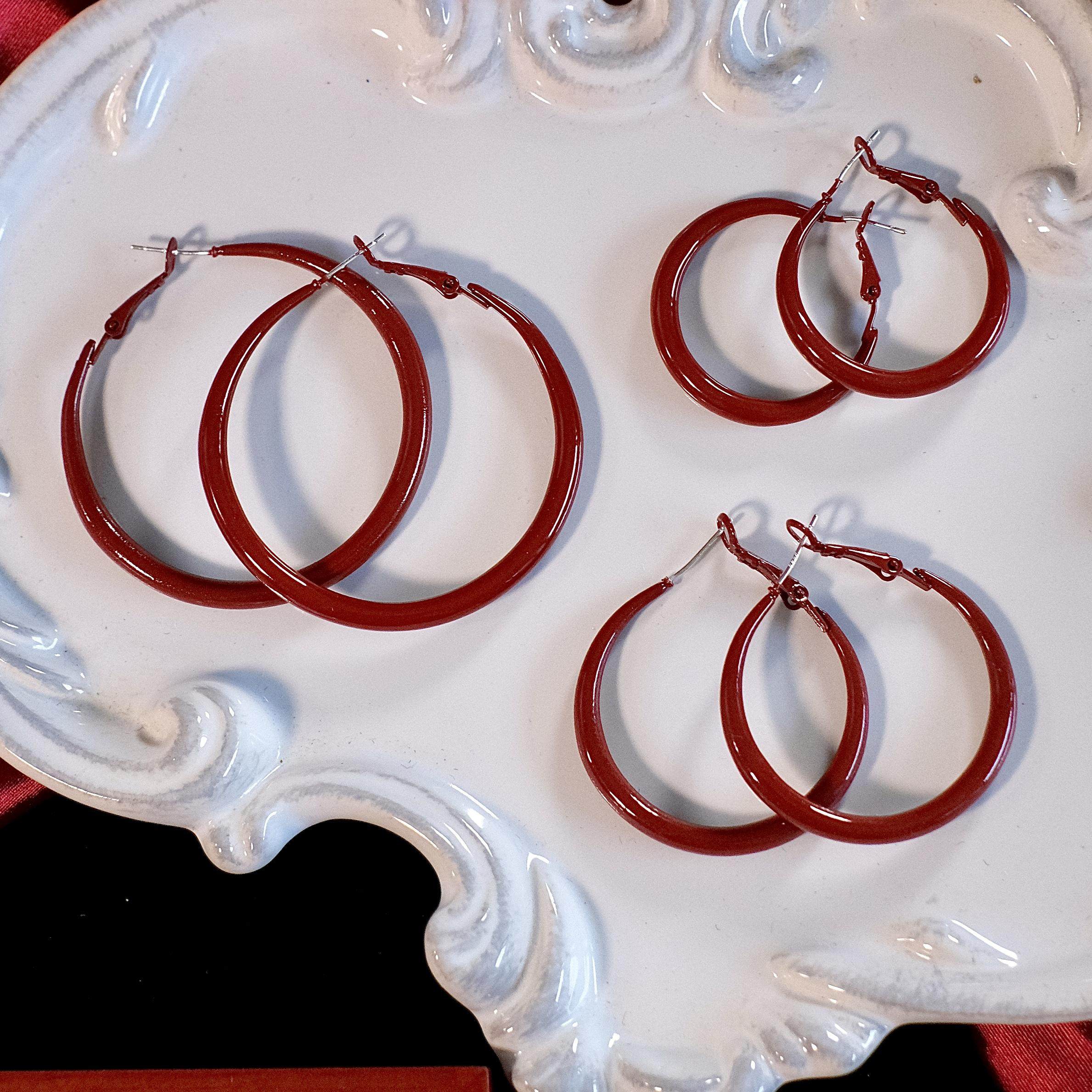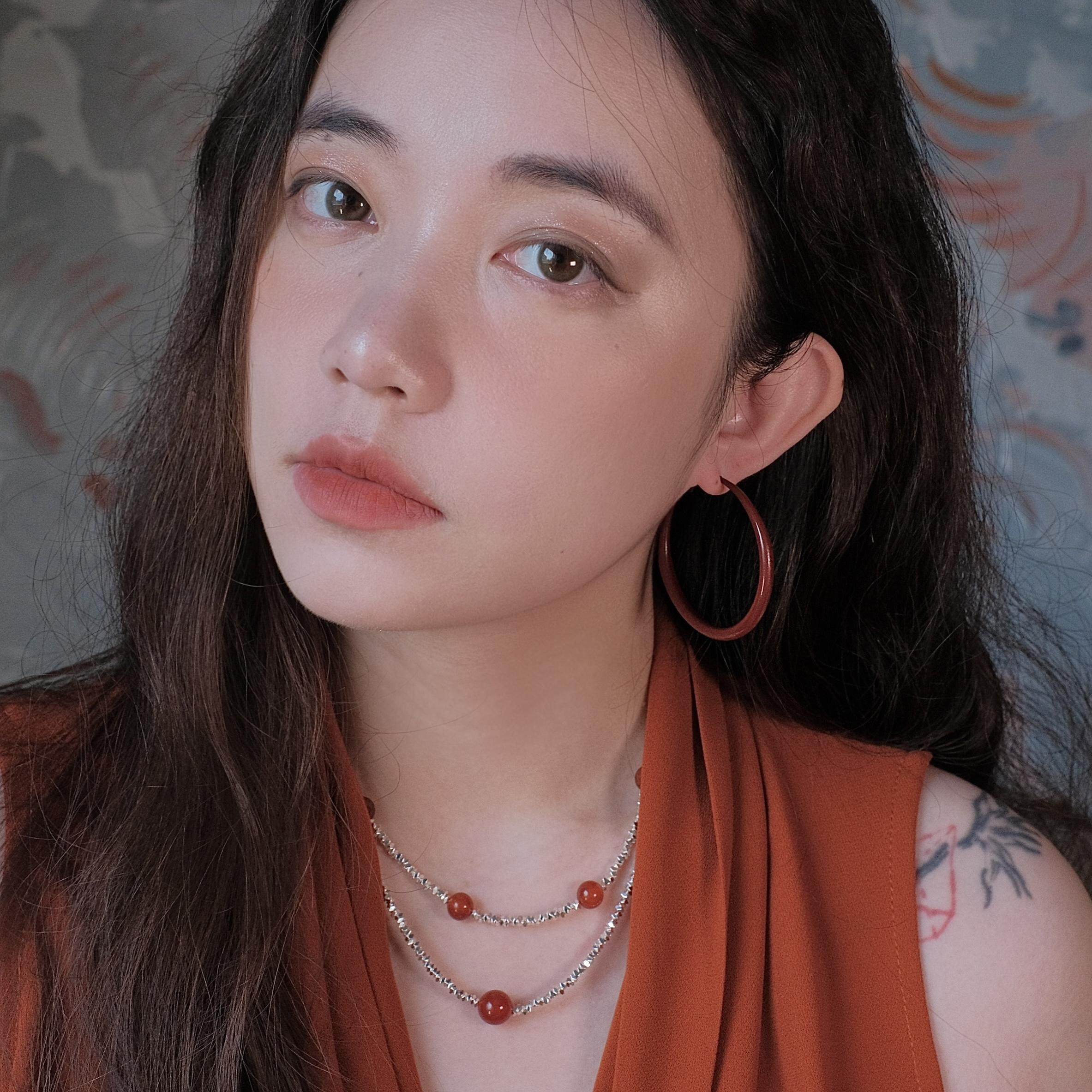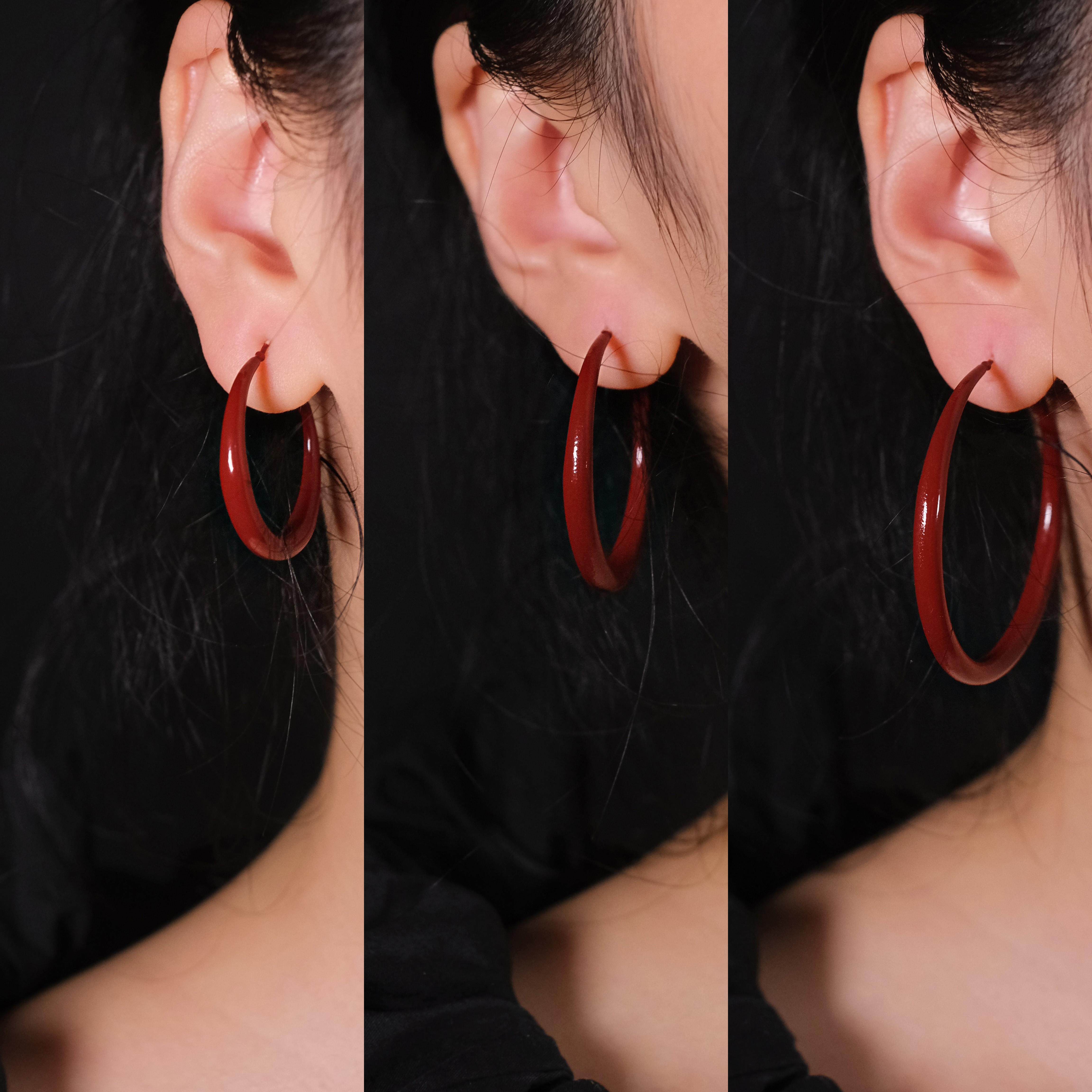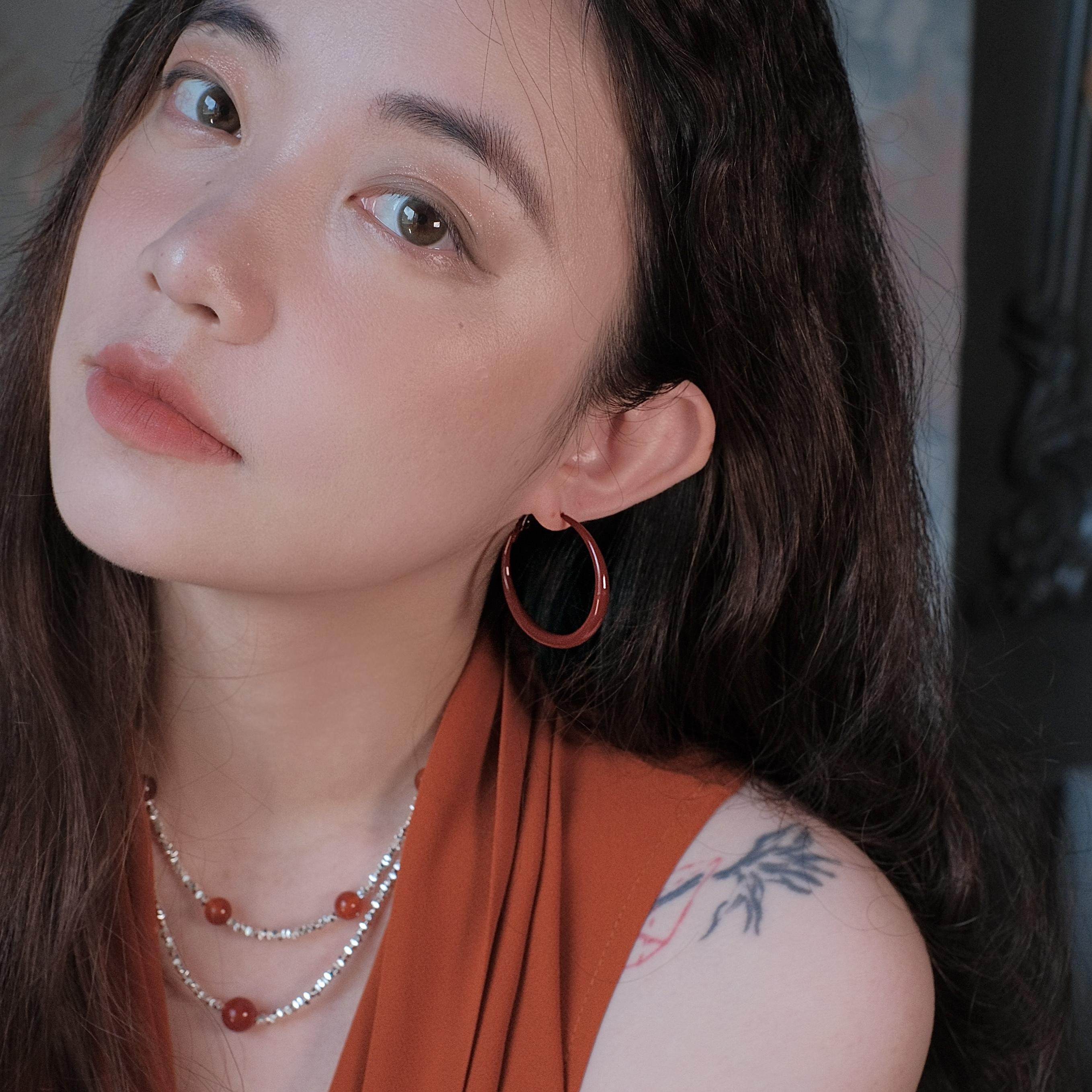 《安可拉红》秋冬法式酒红色简约百搭小众高级感圆圈耳环耳圈耳饰
