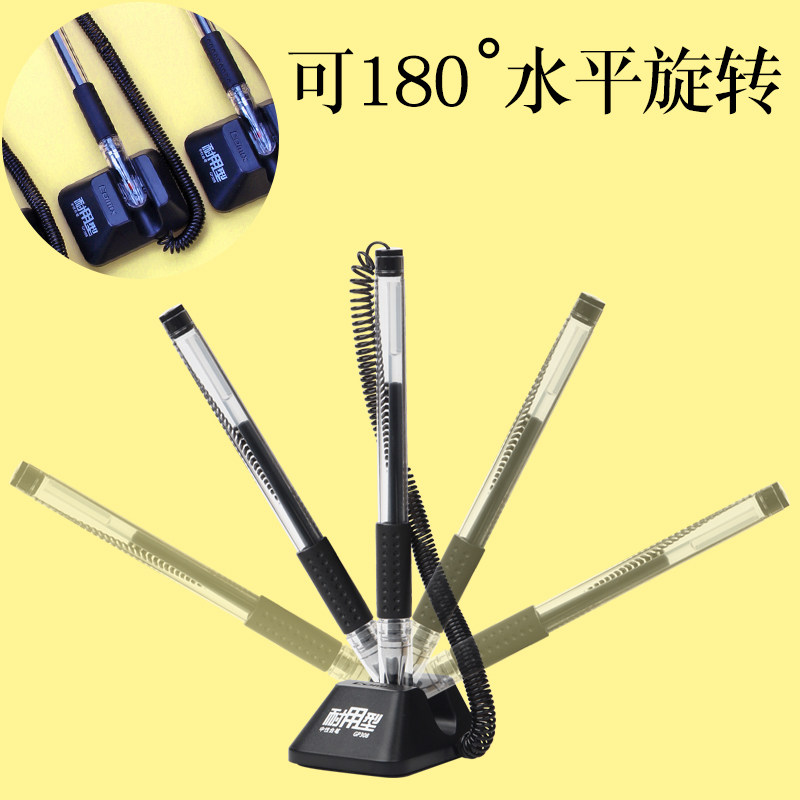 齐心前台固定办公中性笔柜台桌面可粘贴固定带绳吧台笔办公文具用品批发银行前台碳素笔粘桌黑色商务签字笔
