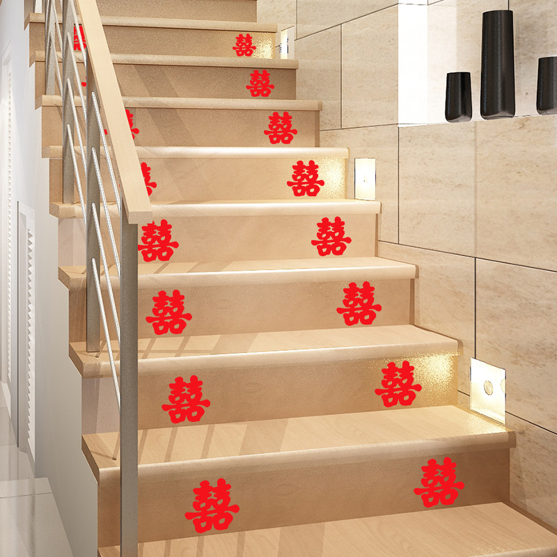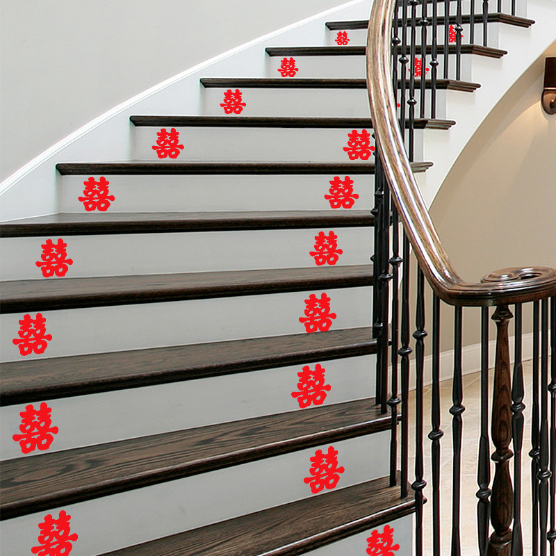 结婚喜字贴楼梯台阶家具贴纸婚房布置套装装饰小喜字婚庆用品大全