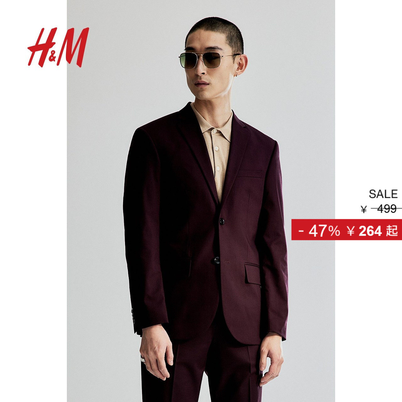 HM男装西服冬季商务单排扣合身红色西装伴郎服0713986