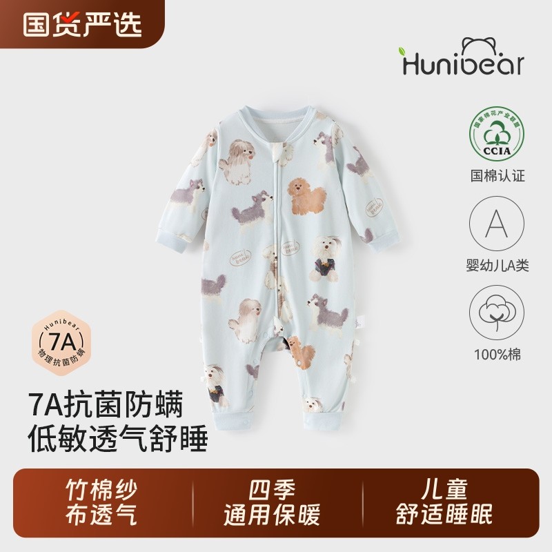 欢喜小熊宝宝秋季纯棉睡袋婴儿防踢衣服儿童秋天分腿睡衣睡眠狗狗
