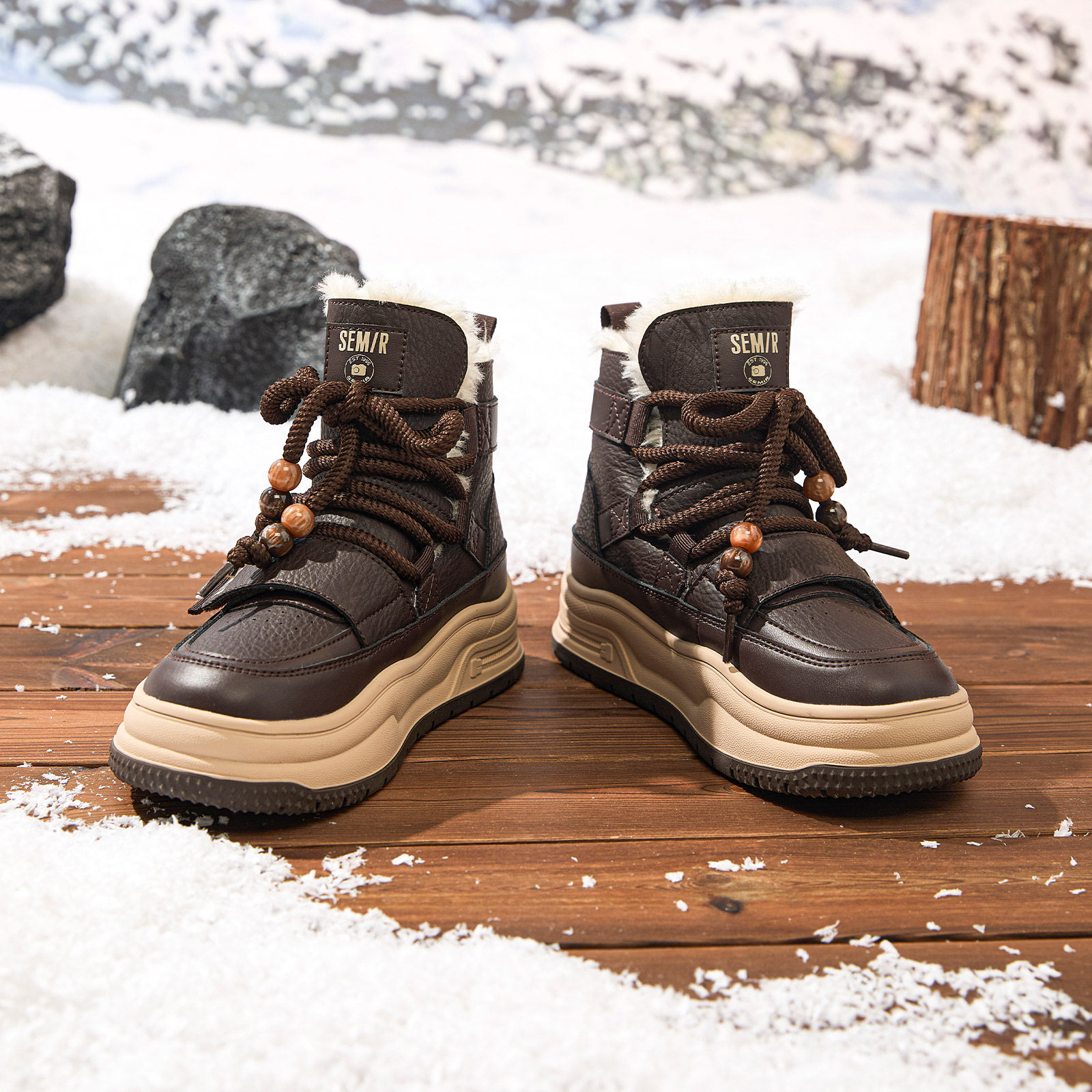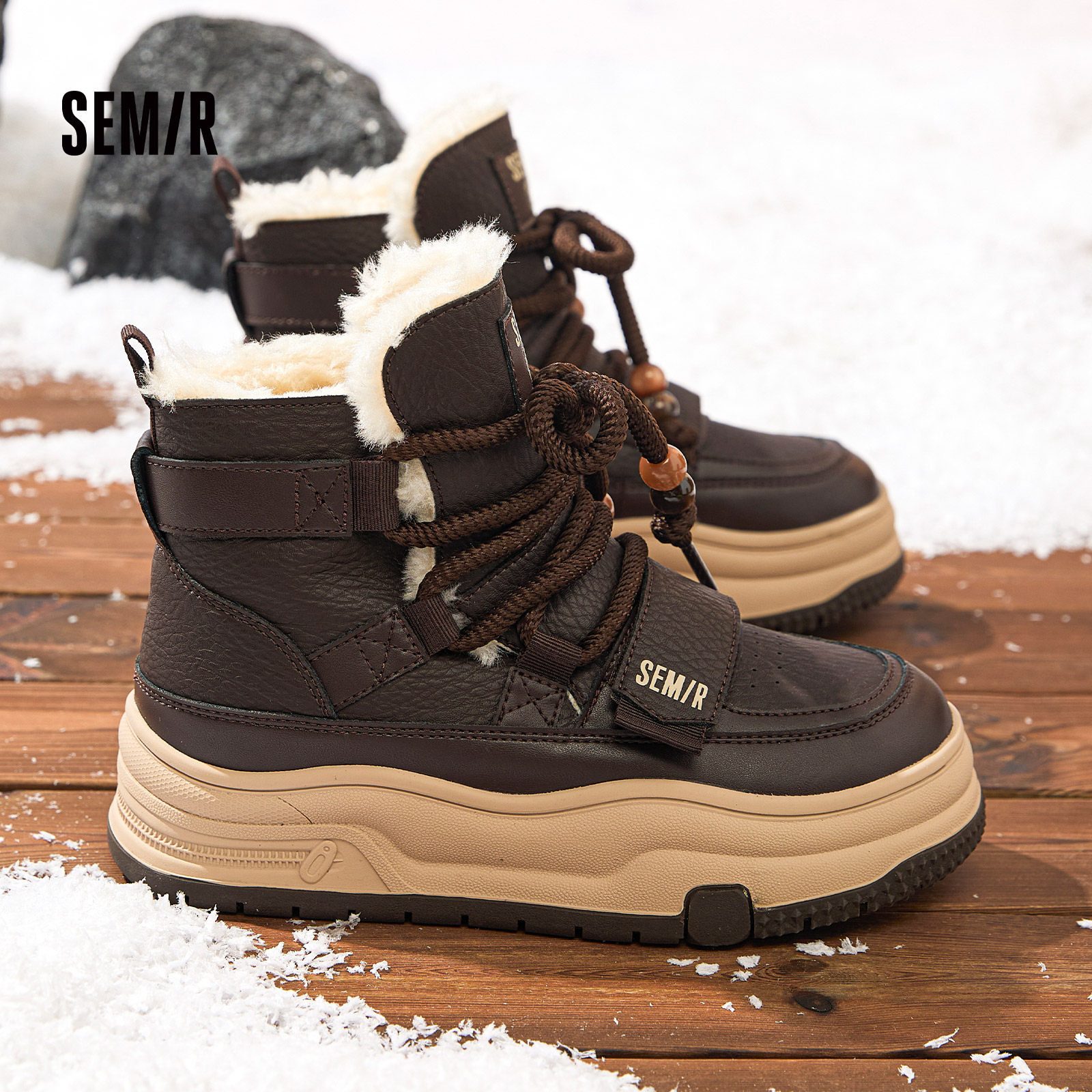 Semir女鞋高帮雪地靴女2026冬季新款厚底加绒毛毛保暖东北厚棉靴