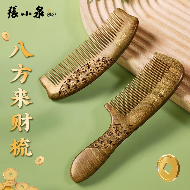 张小泉绿檀木梳子檀香木头梳子整木雕刻正品天然男士女士专用长发