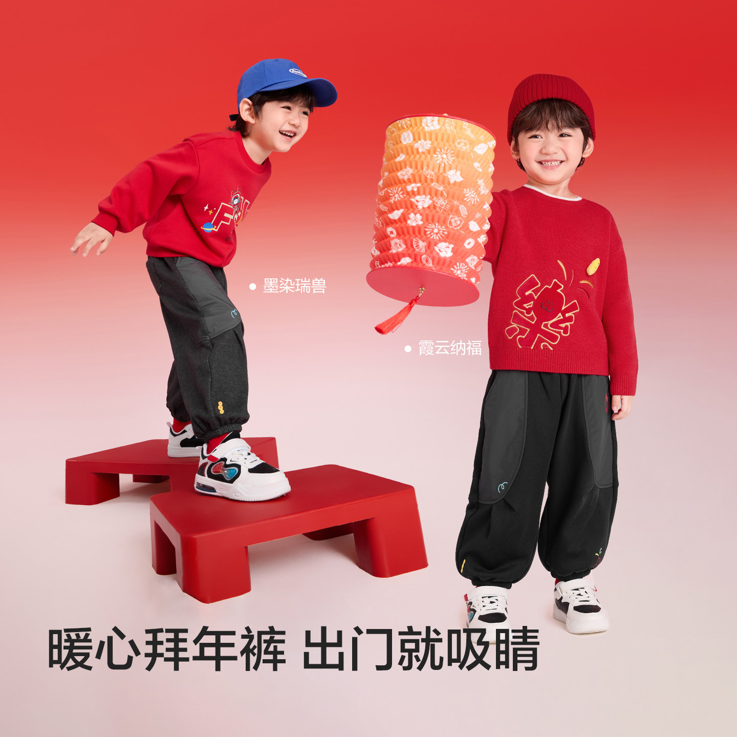 巴拉巴拉童装儿童加绒长裤男女童弯刀裤子2025新款冬装保暖拜年服