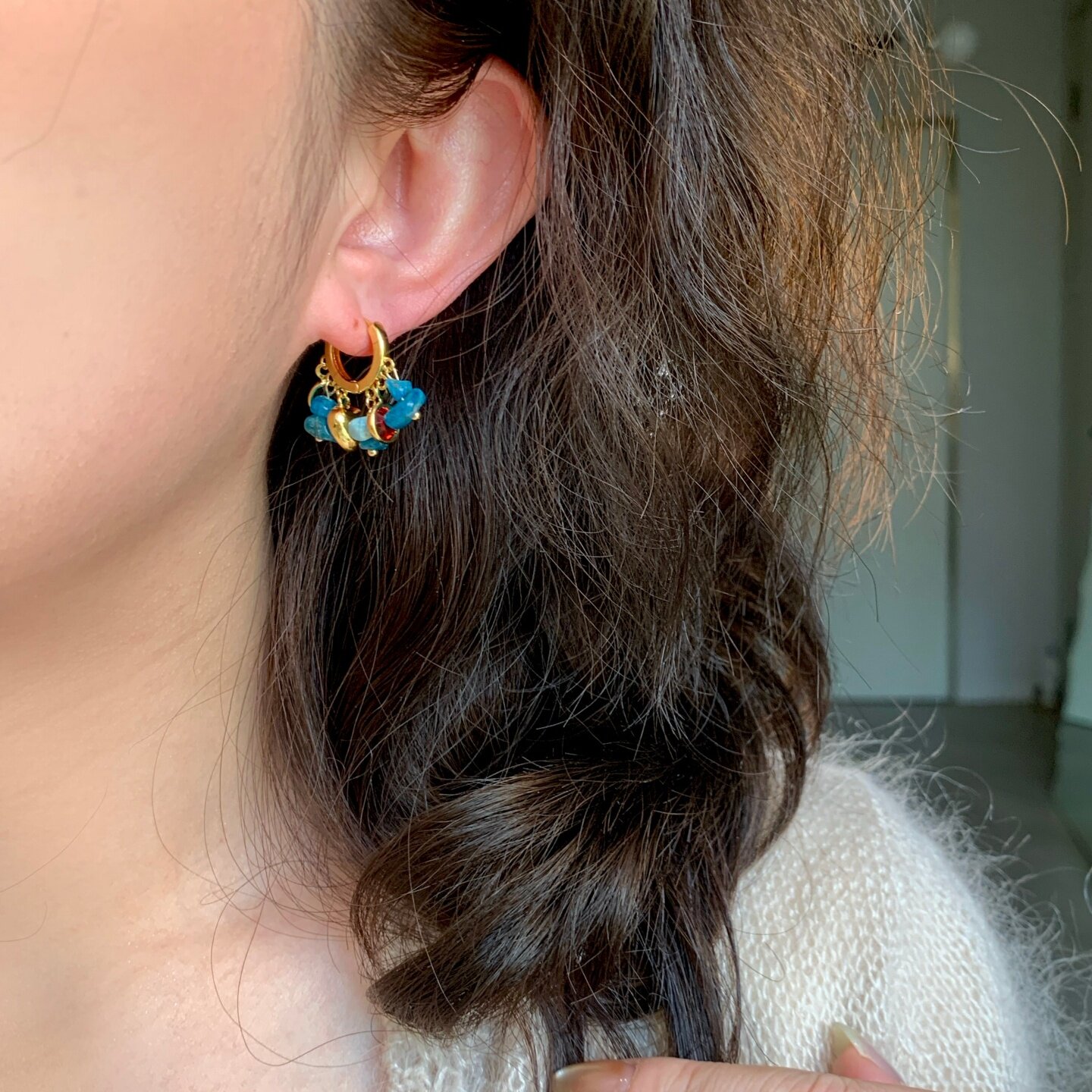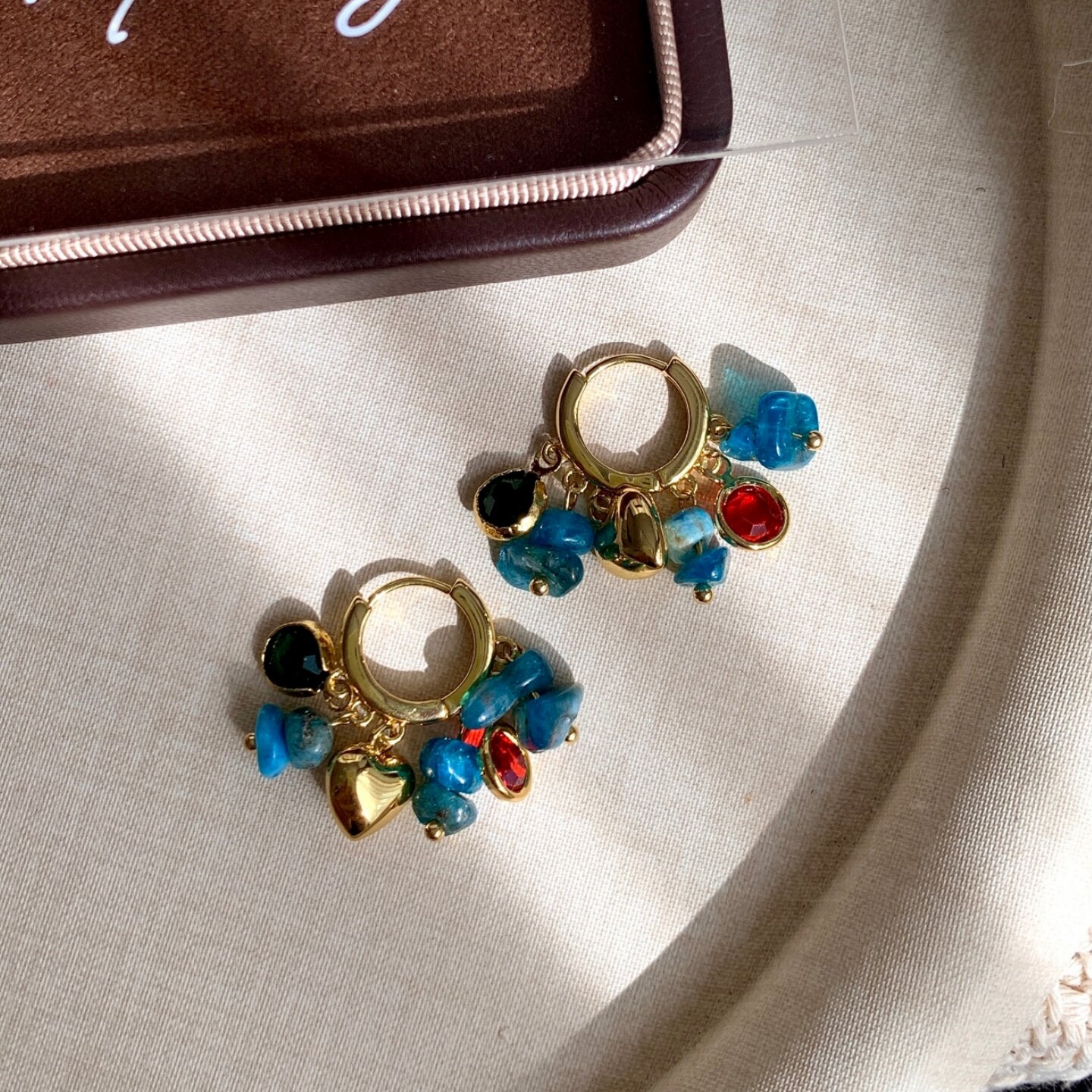 《敦煌》春夏民族风天然石串珠蓝色流苏耳扣耳夹耳饰耳钉耳环耳圈