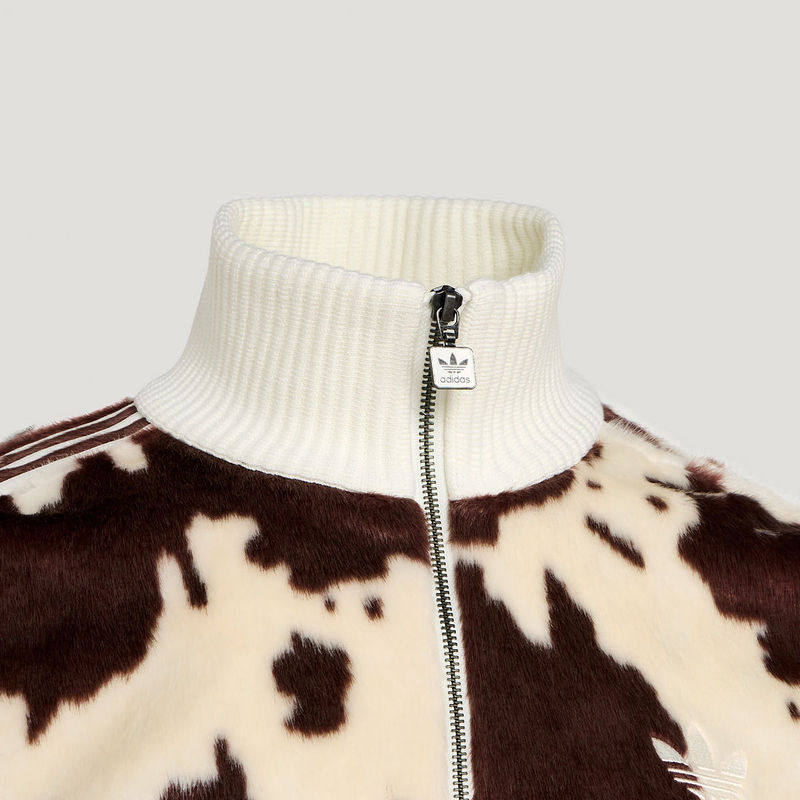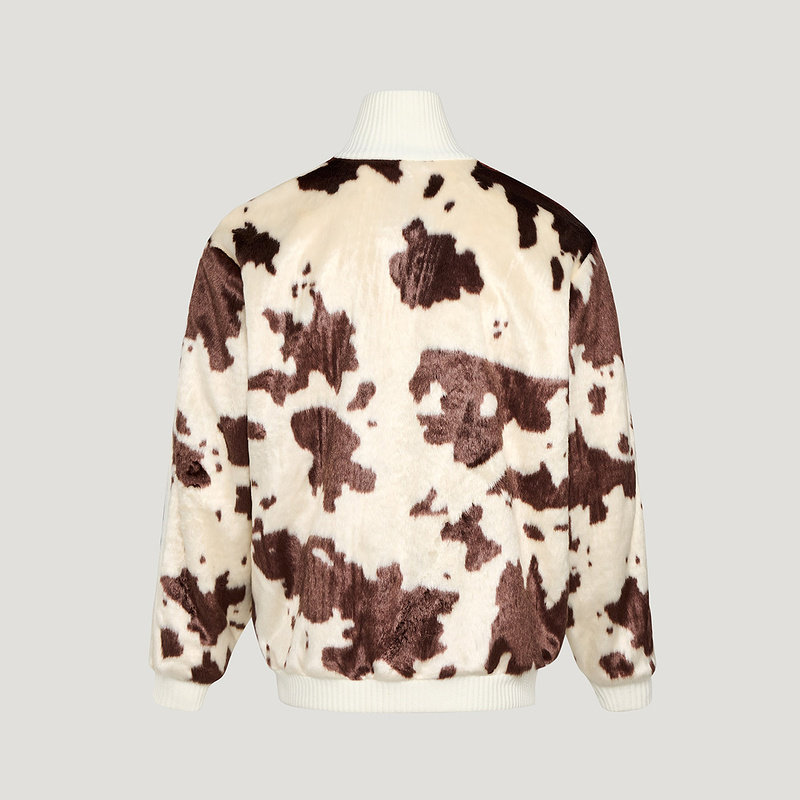 阿迪达斯三叶草26男女同款仿皮草奶牛纹印花运动宽松外套 KU9405