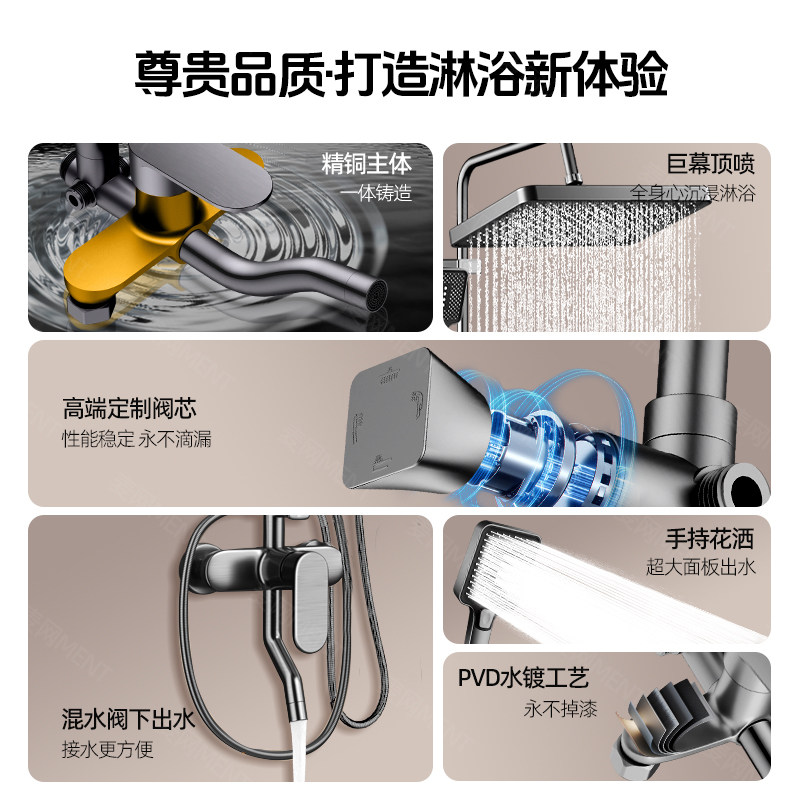 全铜淋浴花洒套装家用浴室增压大淋浴器卫生间洗澡全套顶喷奶油