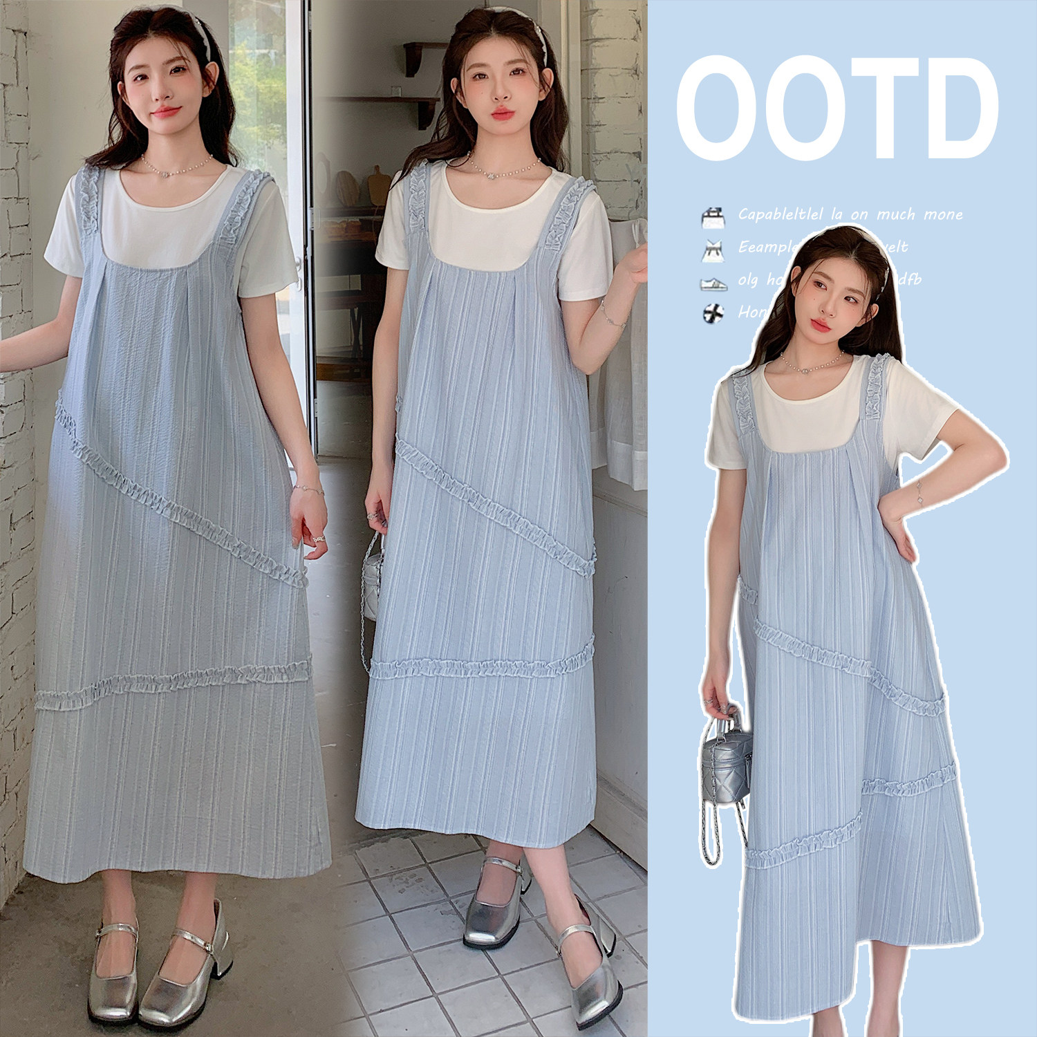 婧麒孕妇夏装连衣裙背带裙上衣两件套薄款女士衣服2025超火重