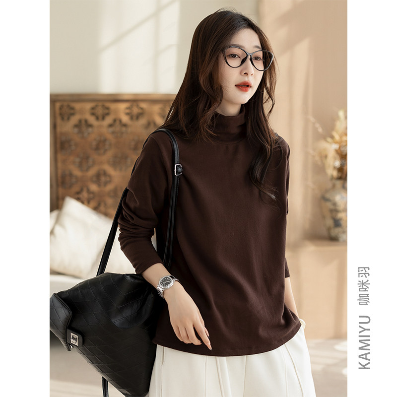 咖咪羽打底衫女秋冬新款女士半高领纯色宽松时尚洋气好看女装内搭