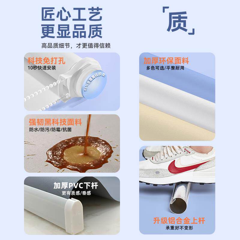 伸缩遮阳卷帘窗帘免打孔安装卫生间厨房全遮光遮挡防水卷拉式百叶