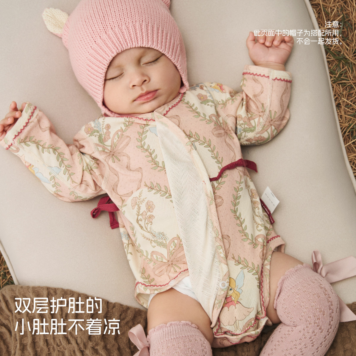 婴蓓依新生儿衣服婴儿连体衣宝宝蝴蝶衣0-6个月秋冬a类护肚和尚服
