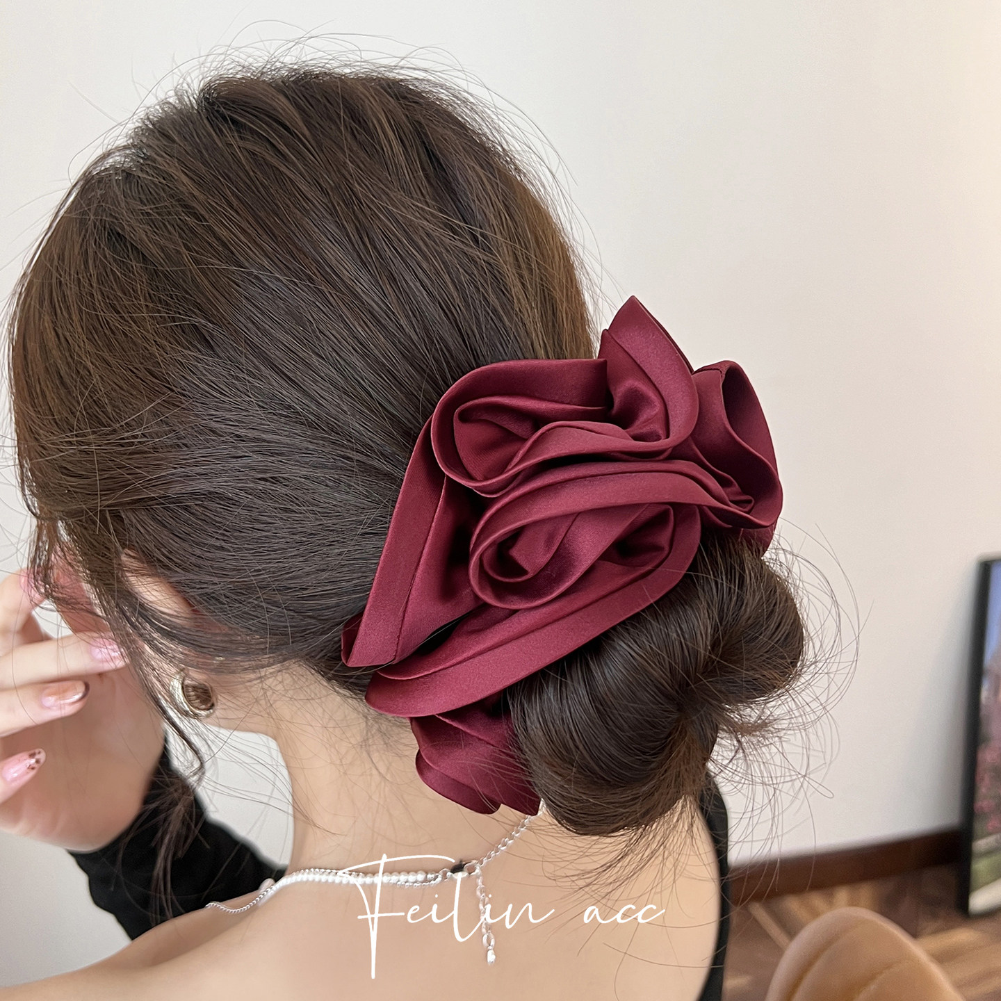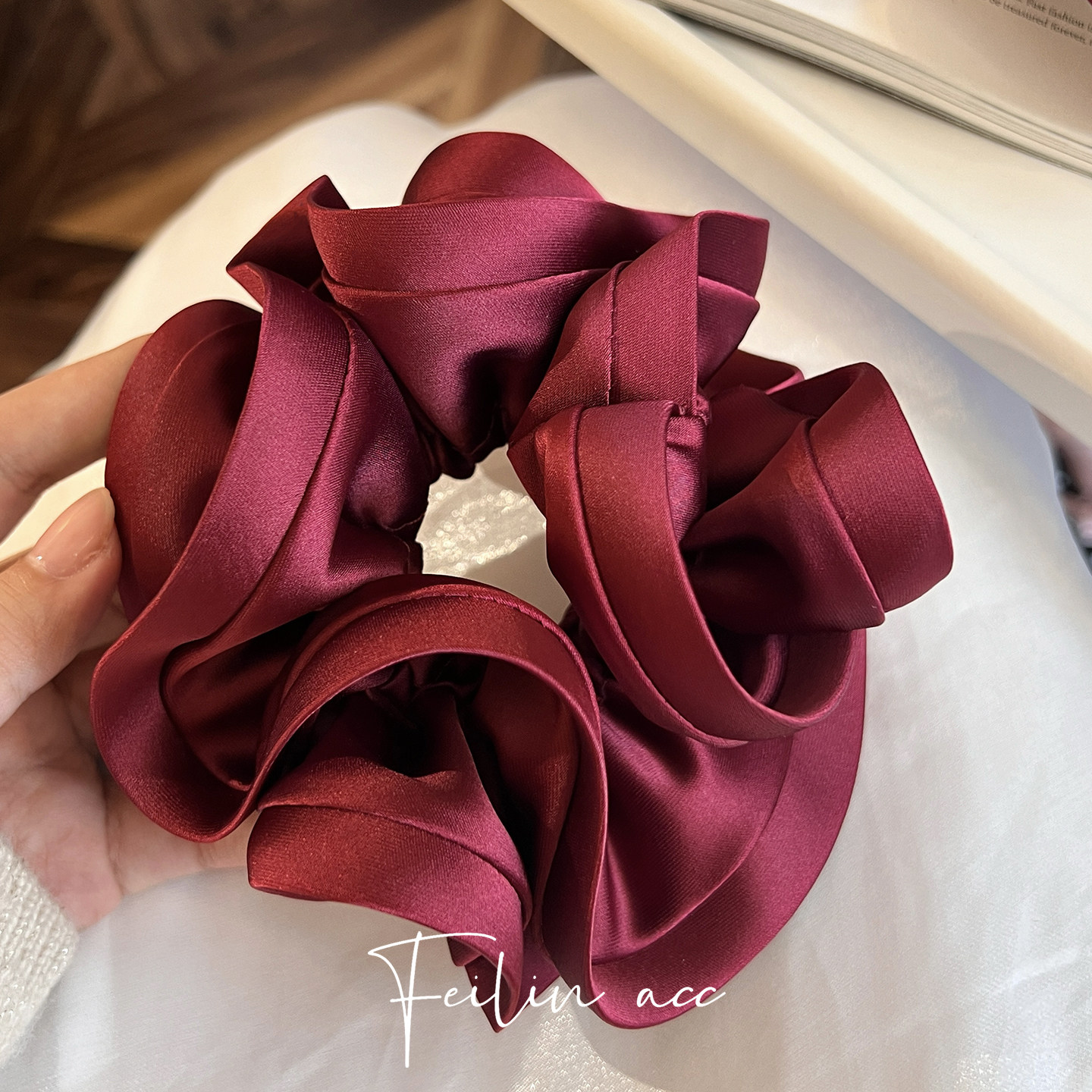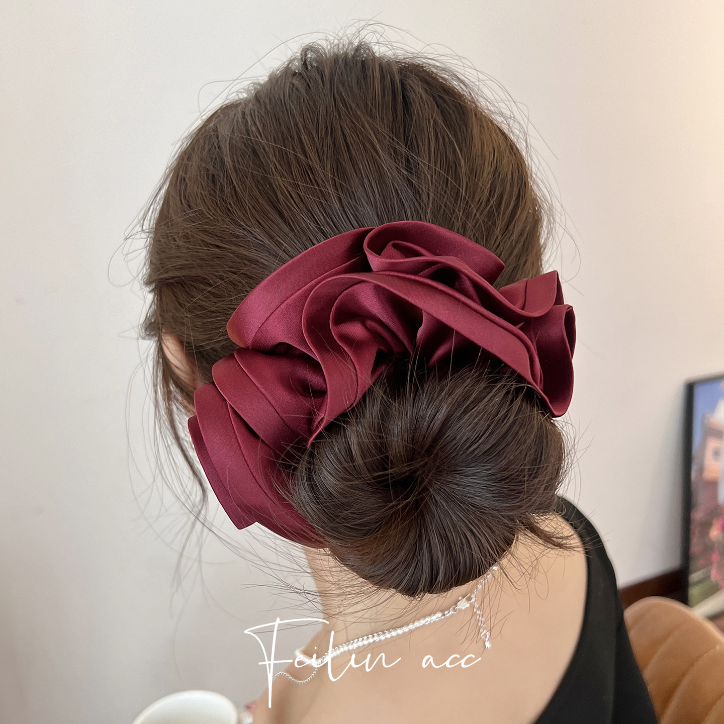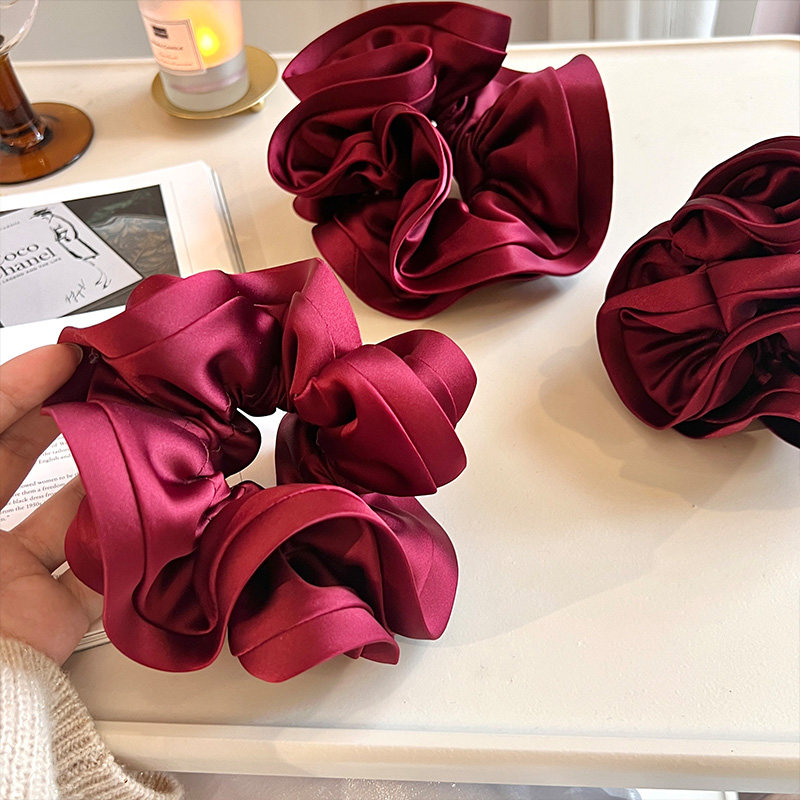 安可拉红色绸缎褶皱大肠发圈女2026新款头花高级感扎马尾发绳头绳