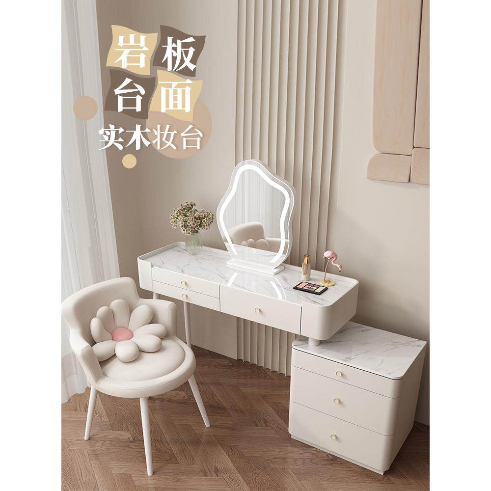 奶油风卧室梳妆台斗柜一体现代简约主卧轻奢化妆台实木北欧化妆桌