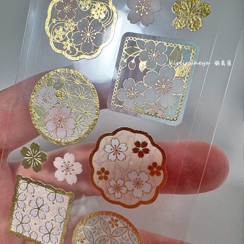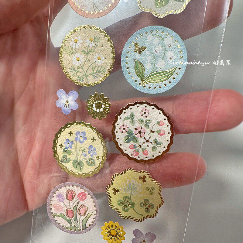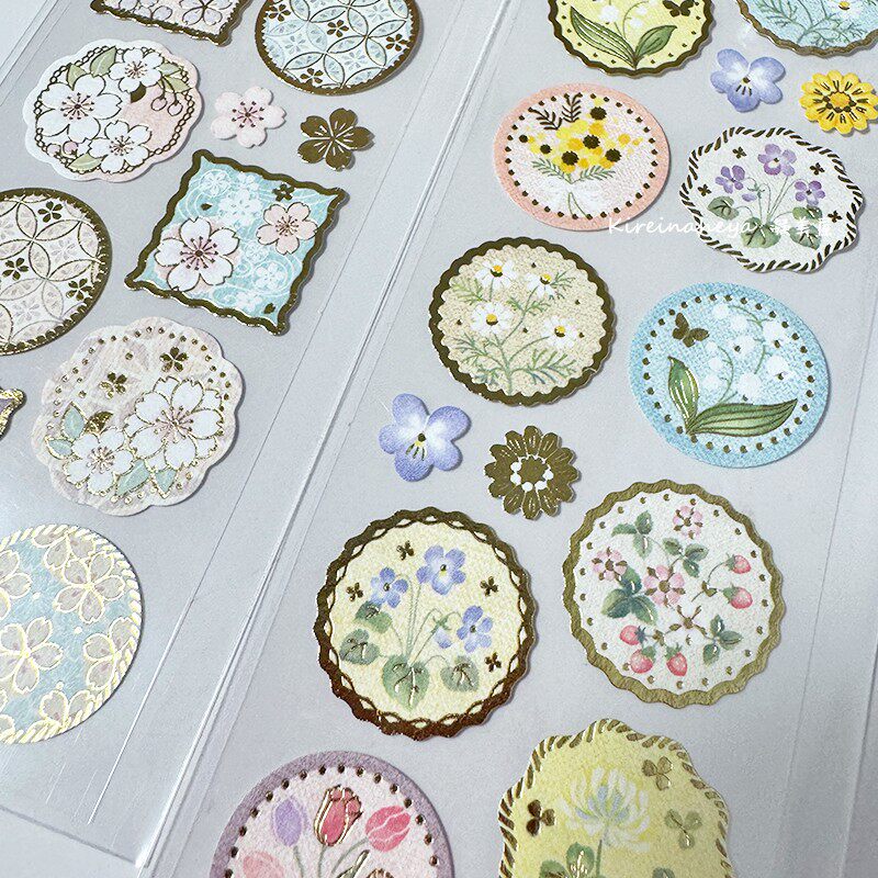 日本新款人气邮票框装饰记事本日记手账粘性贴画花卉图案素雅贴纸