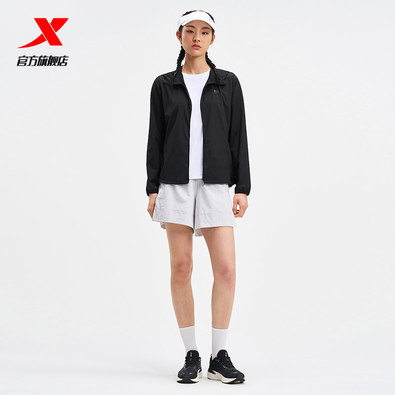 特步运动外套女款2025夏季新品运动休闲连帽单风衣975228140050