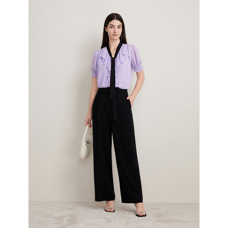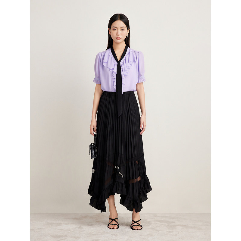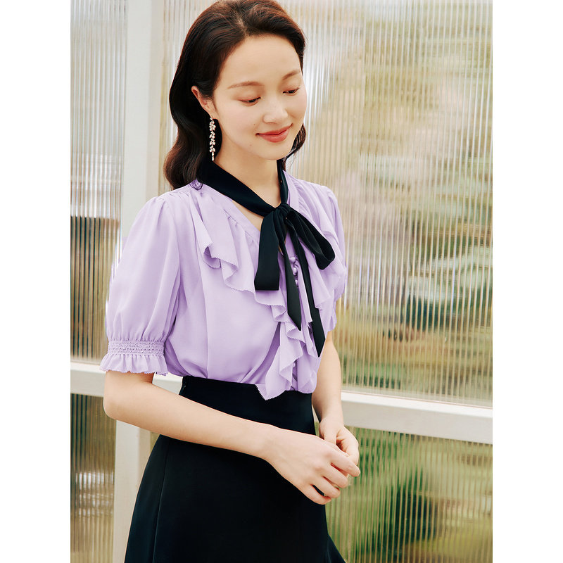 Goodland美地夏季法式浪漫荷叶领衬衫雪纺上衣