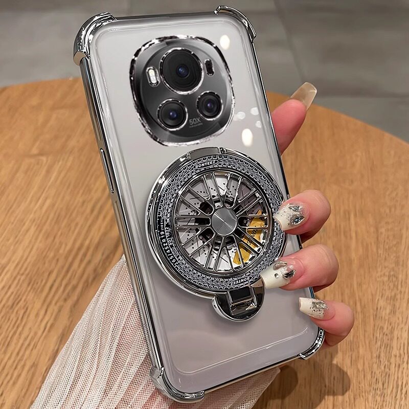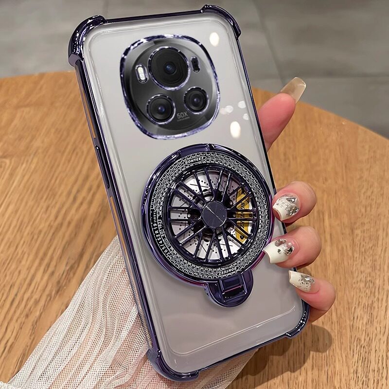 适用荣耀magic6pro手机壳新款电镀四角防摔华为magic6陀螺旋转支架magic5高级感男女4pro透明气囊硅胶保护套