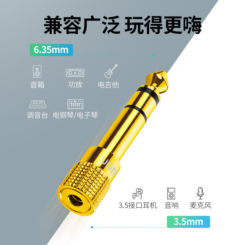 绿联6.5转3.5转接头音频音响吉他麦克风插头电子电钢琴耳机转换器