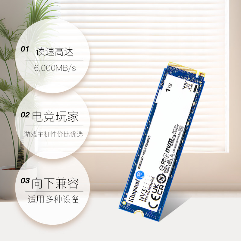 【自营】金士顿NV3 1T/2T固态硬盘kc3000台式机ps5游戏笔记本ssd