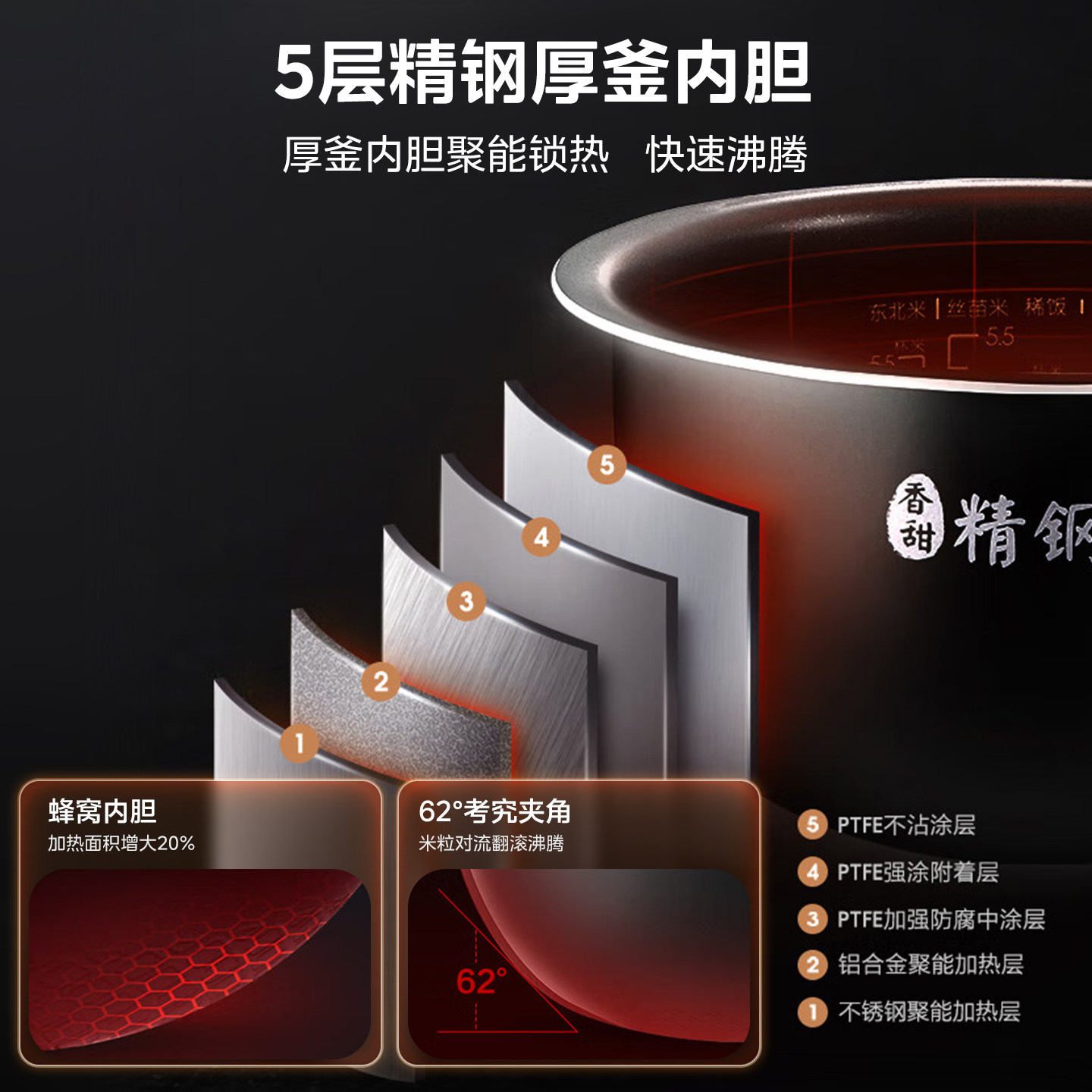 九阳0涂层电饭煲316L不锈钢内胆4-6人多功能低糖家用智能电饭锅