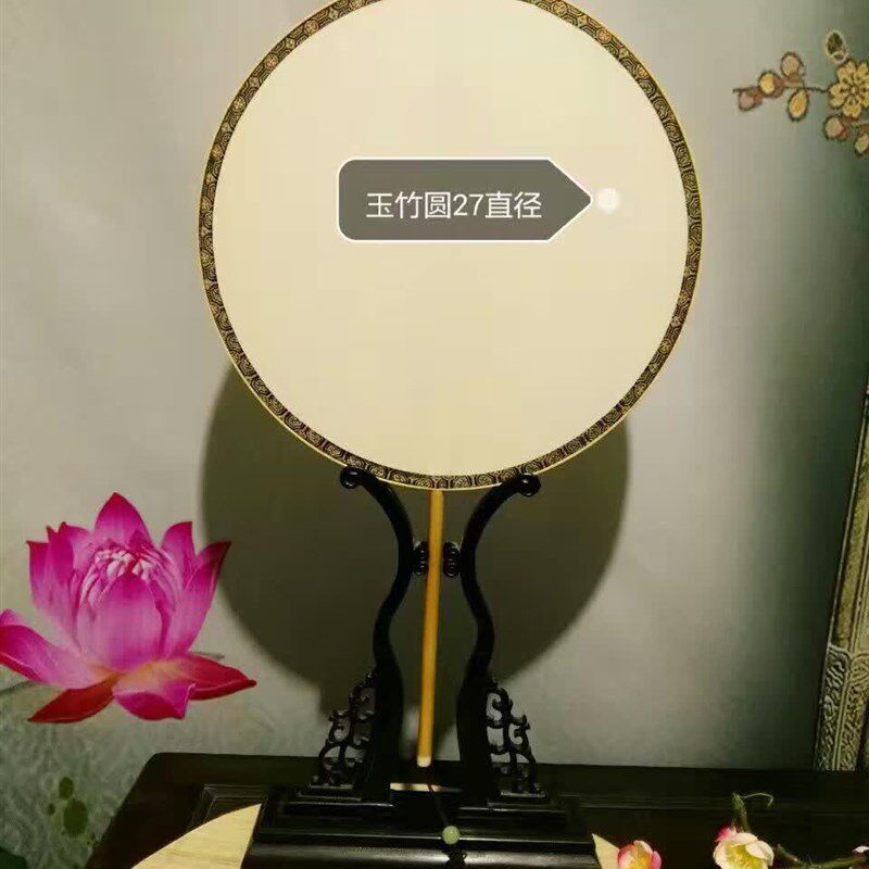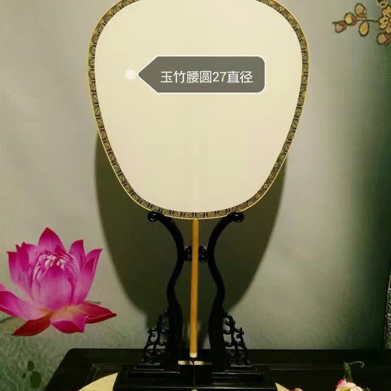 红木大包边宫扇高档工艺礼品扇空白双面真丝扇面装饰台屏团扇