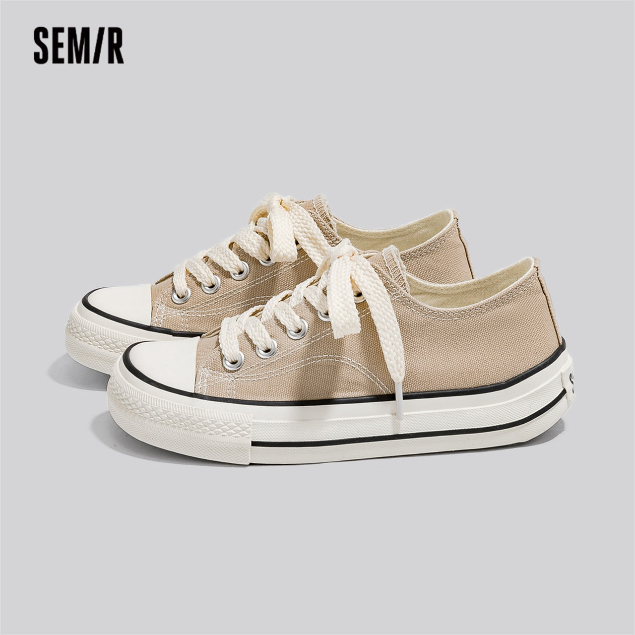 Semir帆布鞋女2025新款秋冬季百搭小白鞋厚底休闲运动板鞋子女鞋
