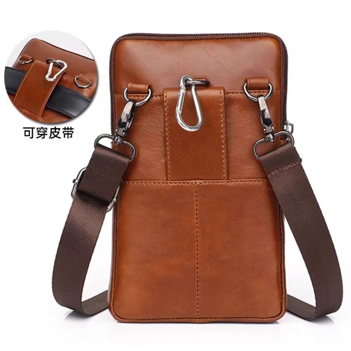 新挂腰牛皮装放手机零钱用的包男穿皮带手机袋中老年人跨腰式腰包