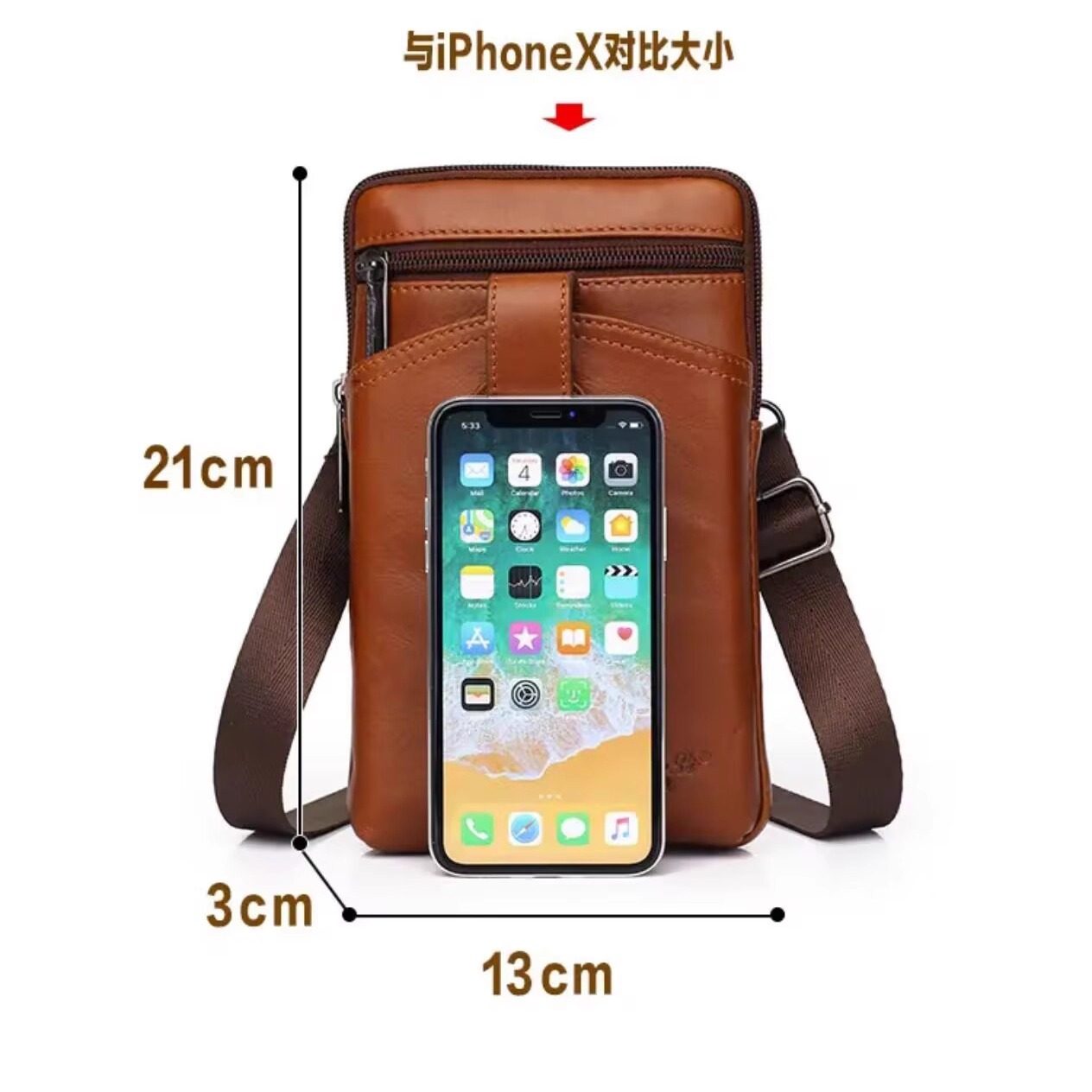 手机腰包男穿皮带横真皮挂腰手机套6寸7寸英寸老年人跨钱包手机包