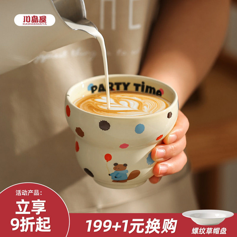 川岛屋手握咖啡杯子陶瓷马克杯女高颜值水杯家用特别好看的拿铁杯