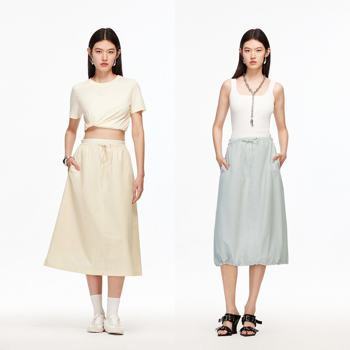 松紧双层 抽绳可调节腰头组合 时髦加倍