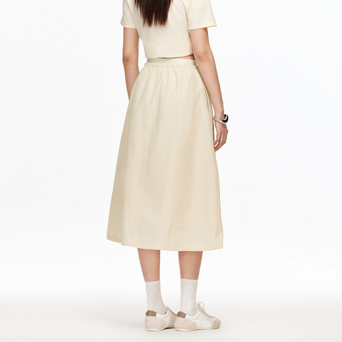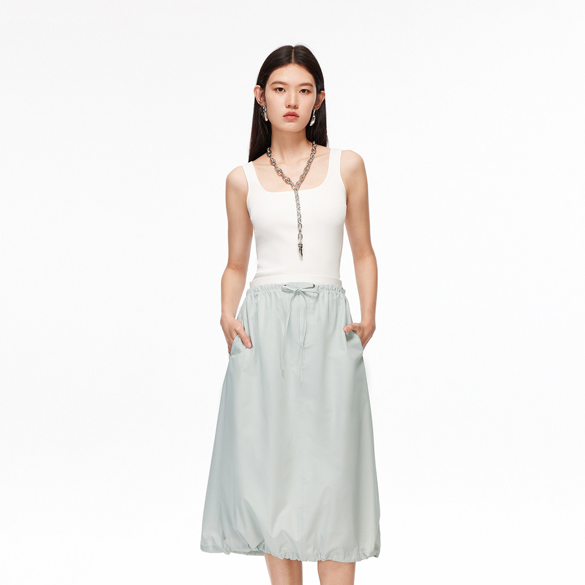 Vero Moda半身裙2025秋季新款含棉抽绳双层腰头A字裙325316013