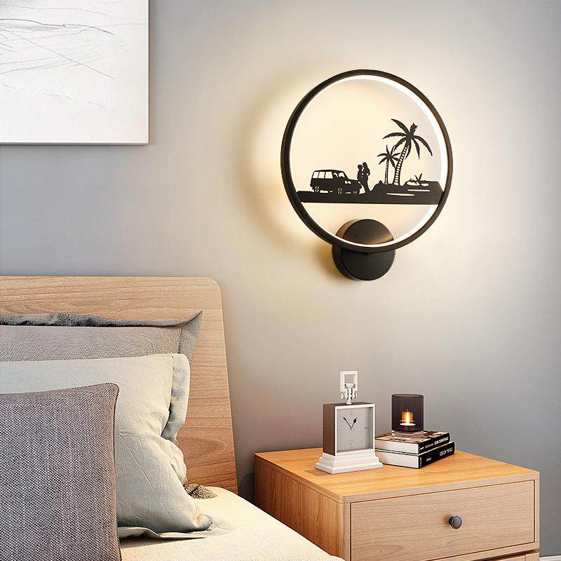 现代简约壁灯客厅电视背景墙卧室床头灯过道楼梯黑色铁艺墙壁灯