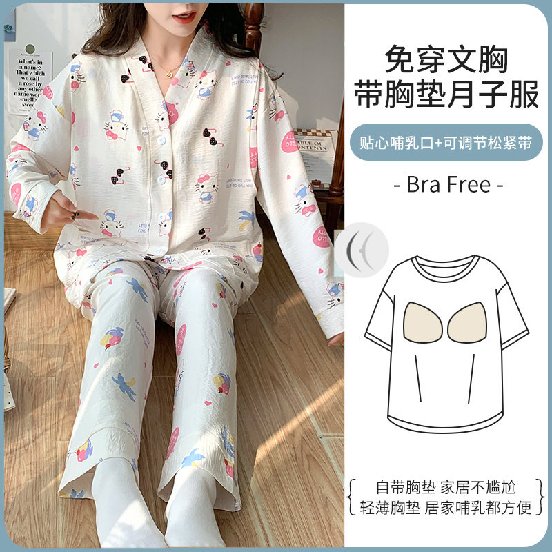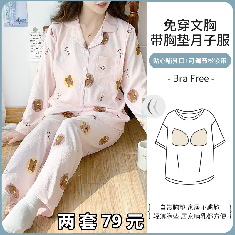 春秋季云感棉带胸垫月子服产后产妇秋冬12月份孕妇哺乳睡衣家居服