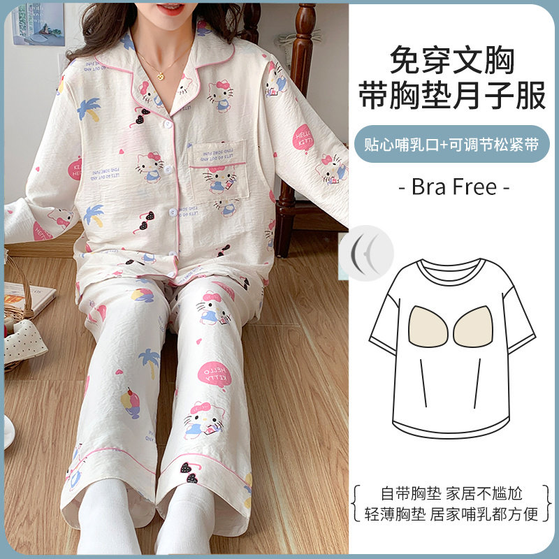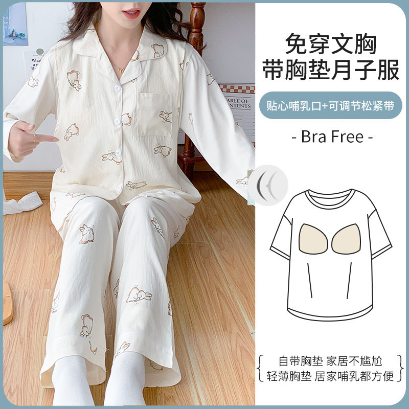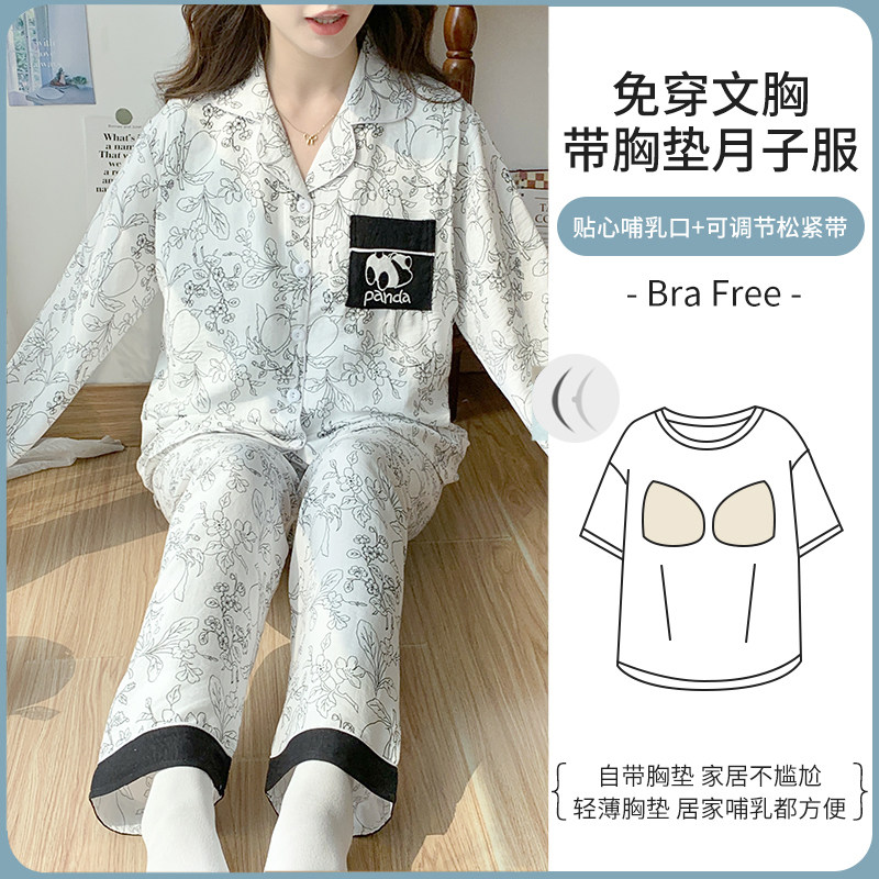 带胸垫月子服纯棉云朵棉夏季薄款产后哺乳孕妇睡衣春秋喂奶坐月子
