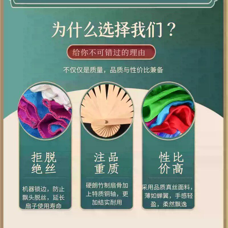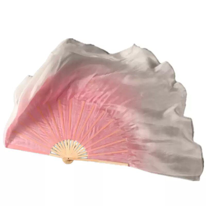 西厢寻他真丝舞蹈扇子藕粉渐变色古典舞双面胶州秧歌扇子加长绸扇