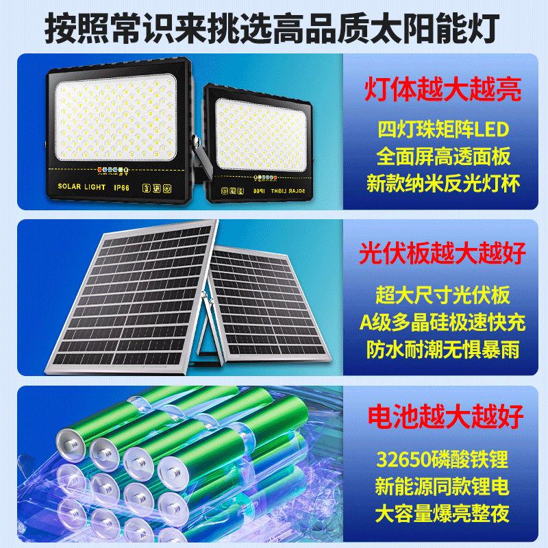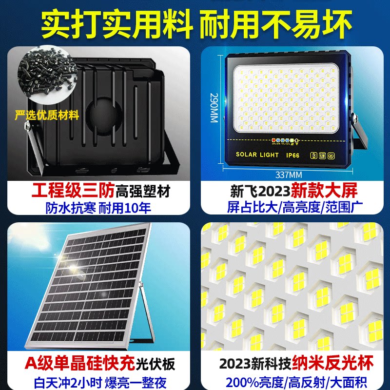 新飞太阳能户外灯庭院家用大功率led投光灯超亮室外防水照明路灯