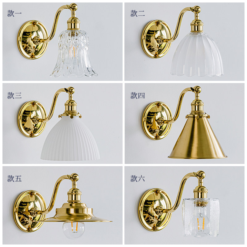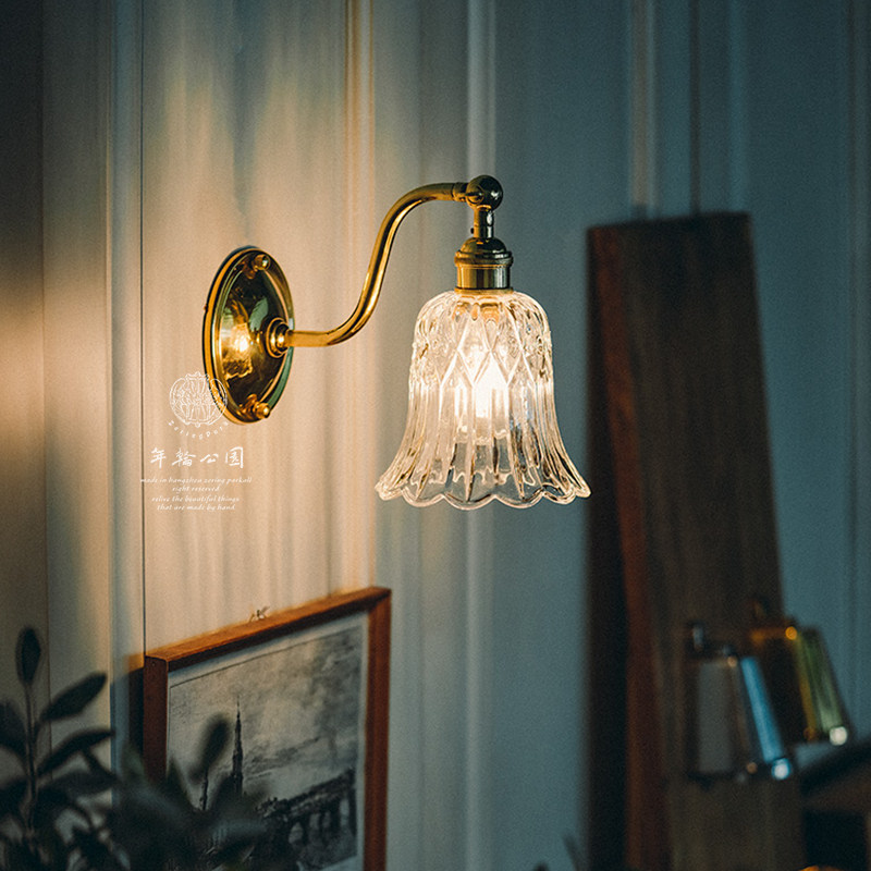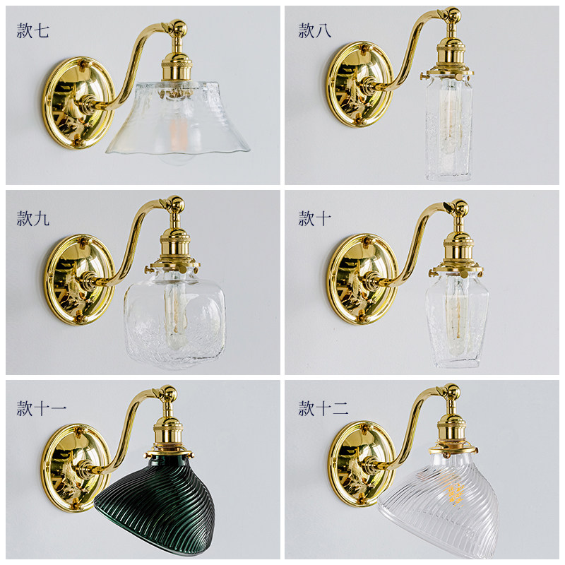 年轮公园ZORING PARK复古黄铜壁灯S形玻璃灯罩led卧室床头镜前灯