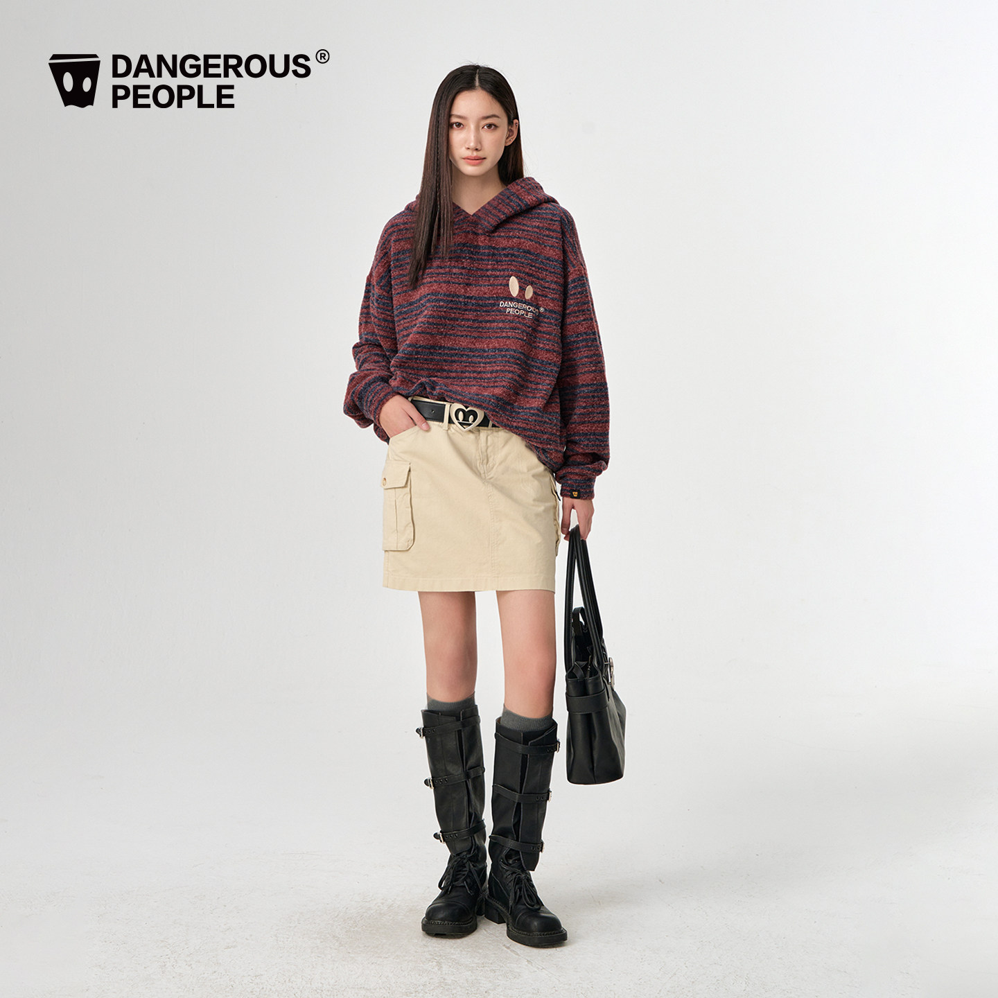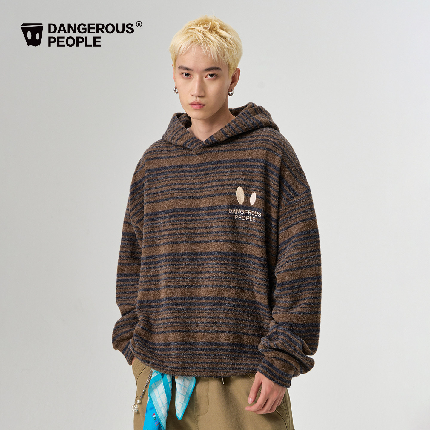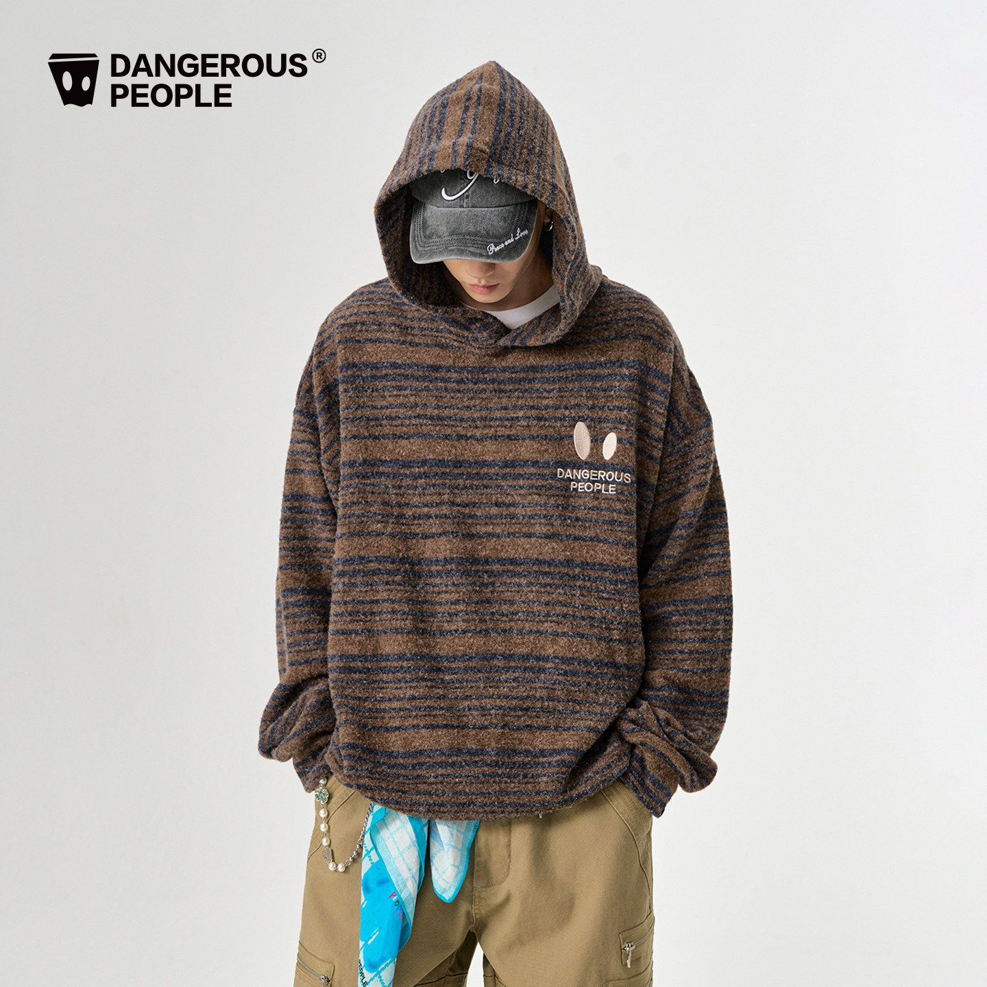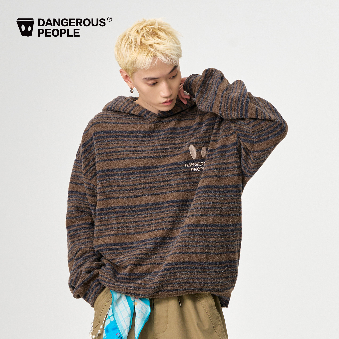 Dangerouspeople薛之谦dsp小眼睛刺绣条纹针织上衣潮牌连帽卫衣