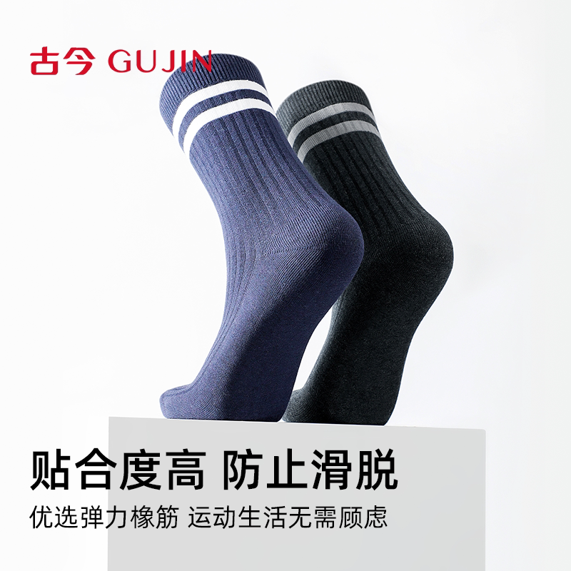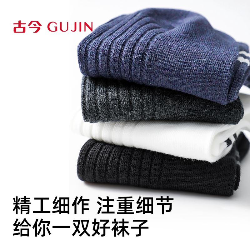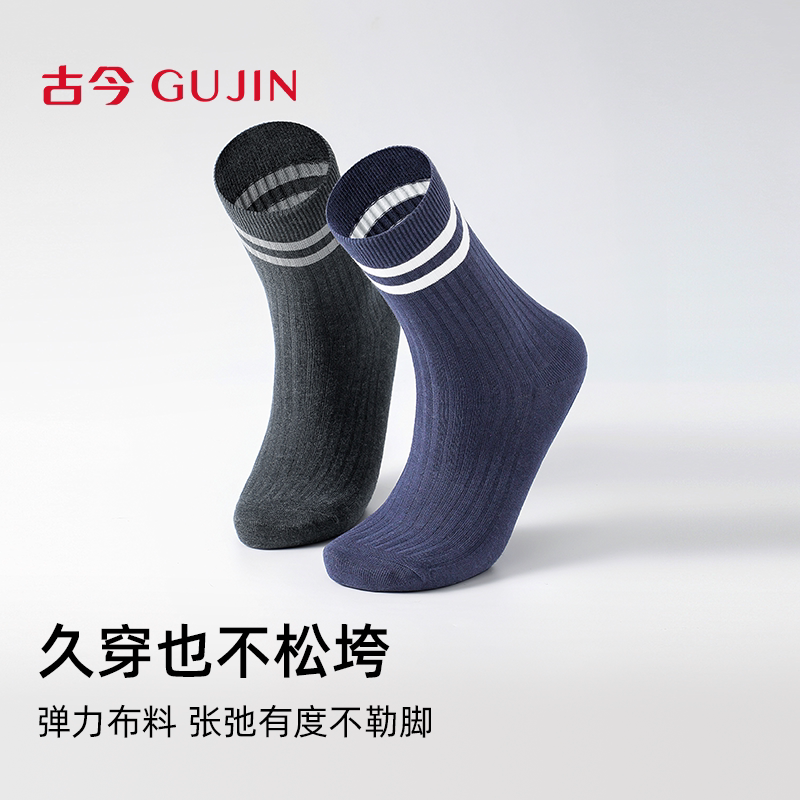 古今男士条纹休闲运动风商务竖坑条棉袜时尚弹力不勒脚柔软舒适