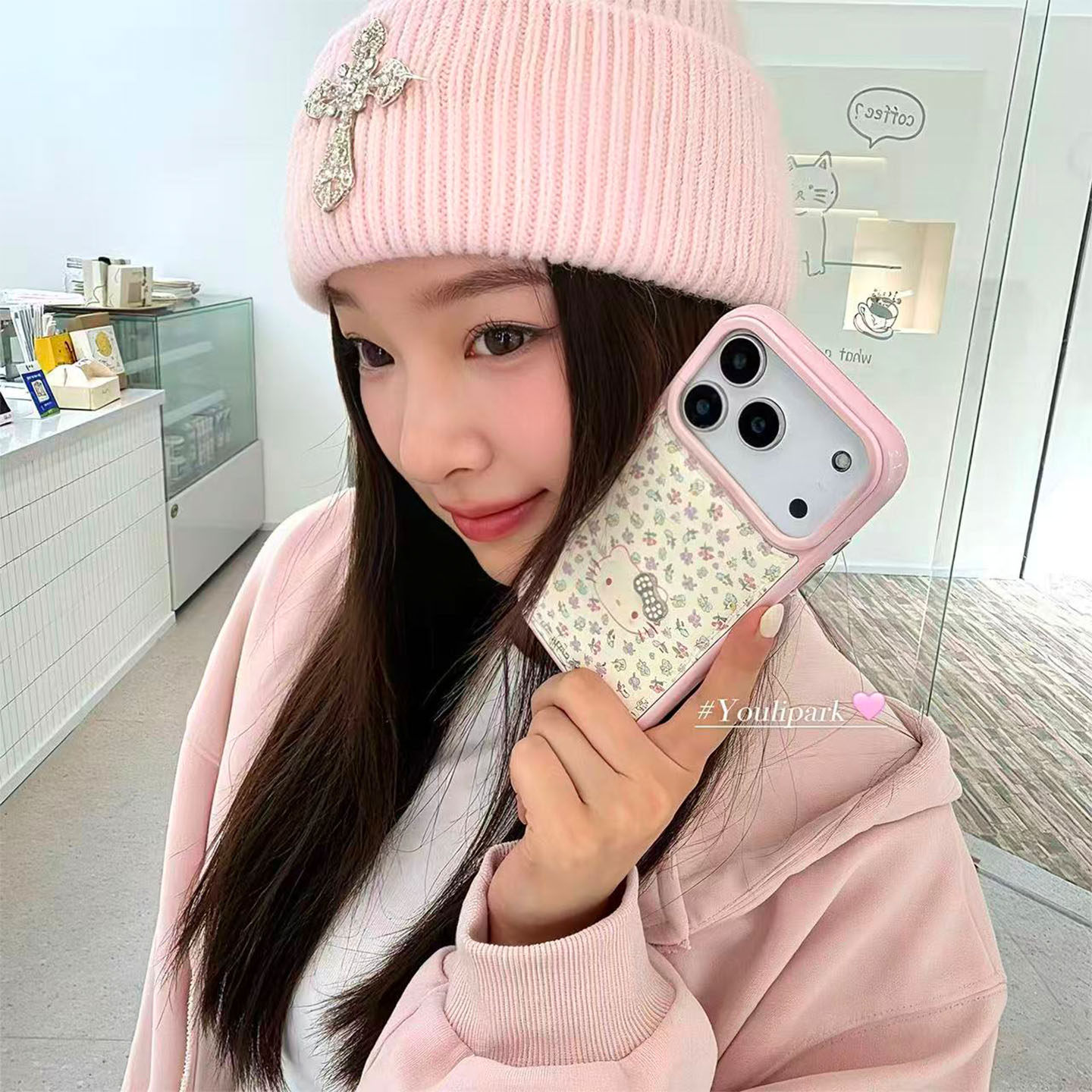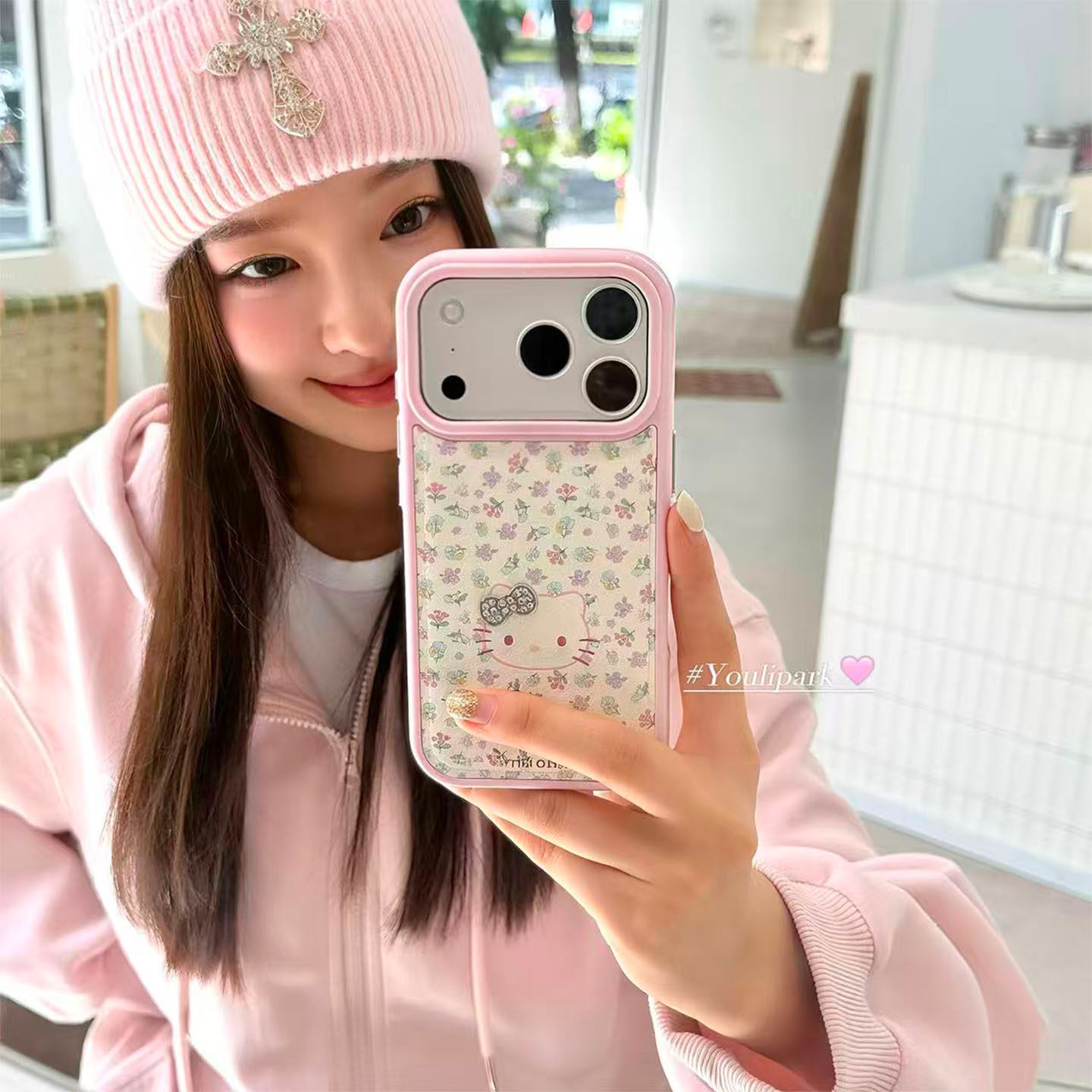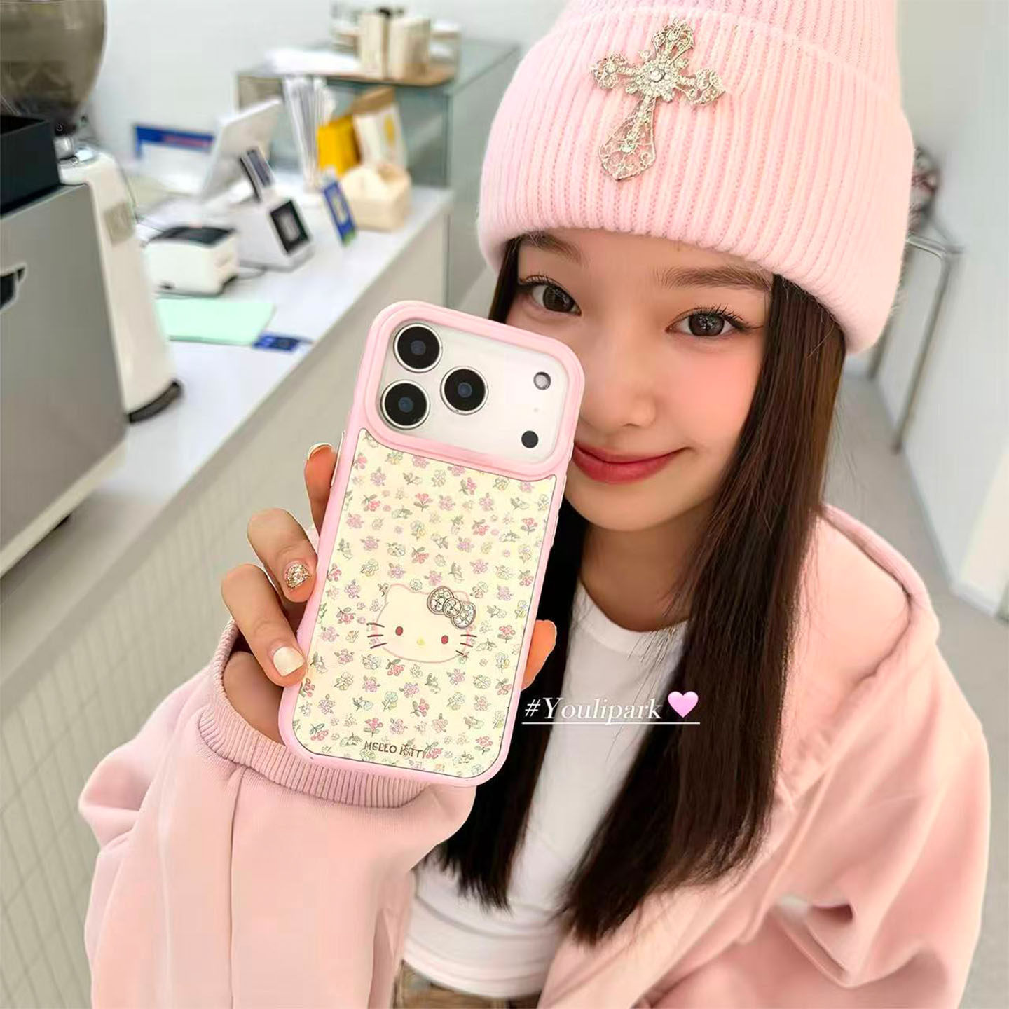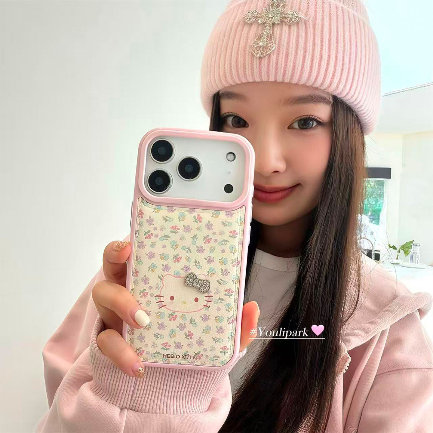 由里公园ins可爱温柔碎花闪钻蝴蝶结猫咪17适用17pro苹果17ProMax手机壳iPhone16全包14新款16Promax保护套女