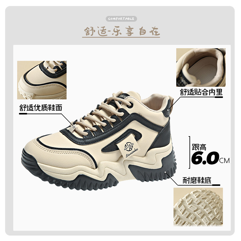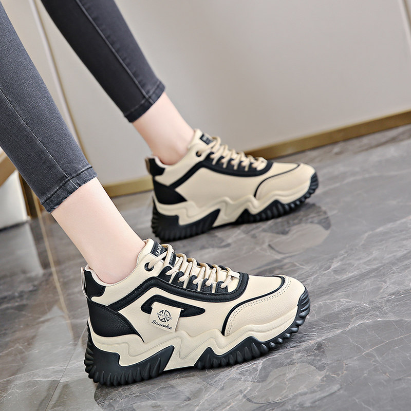 运动鞋女款2025新款春秋季高端休闲厚底爆款脚小高帮老爹鞋轻便